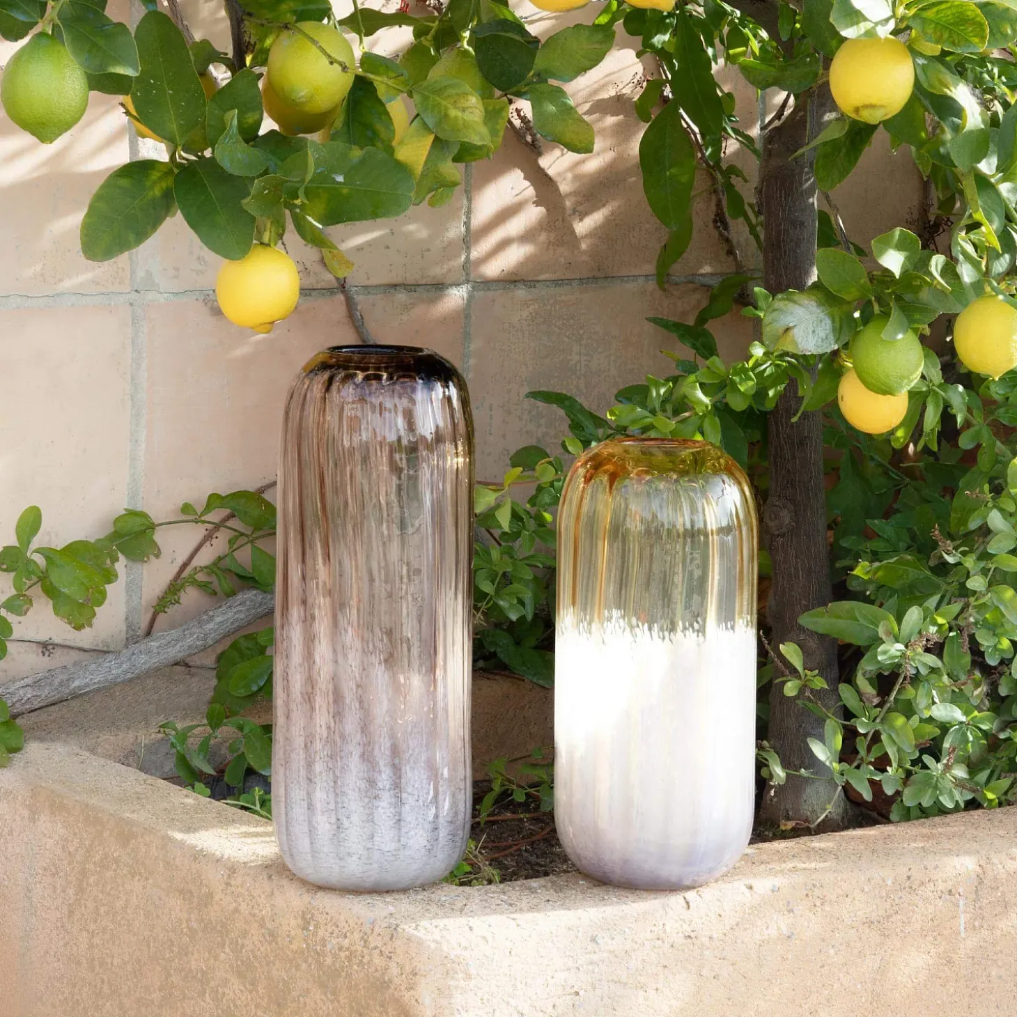 En verre souffléAbril, un vase en verre soufflé qui allie sobriété et éclat raffiné. Sa teinte brune aux reflets irisés sublime bouquets secs ou fleurs à grandes tiges.