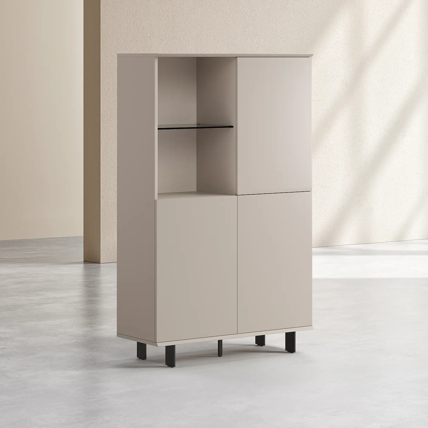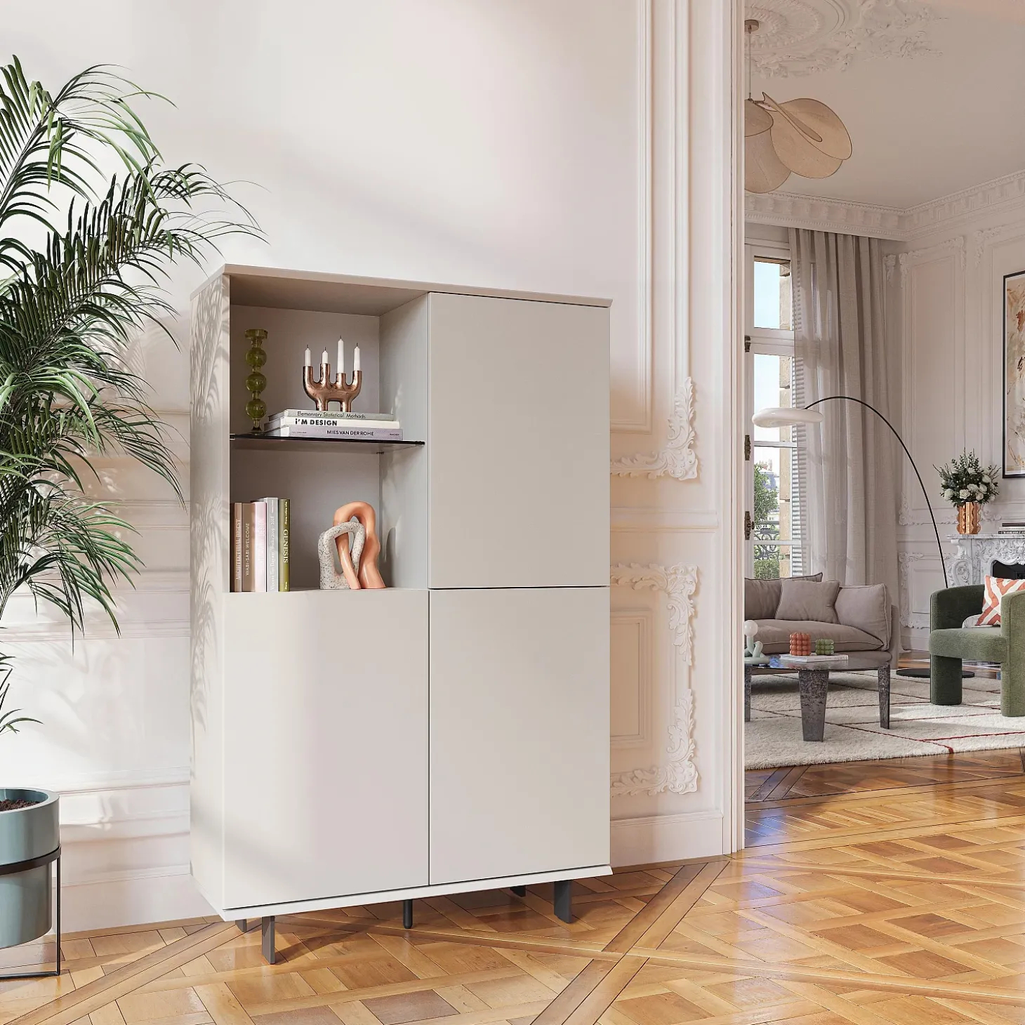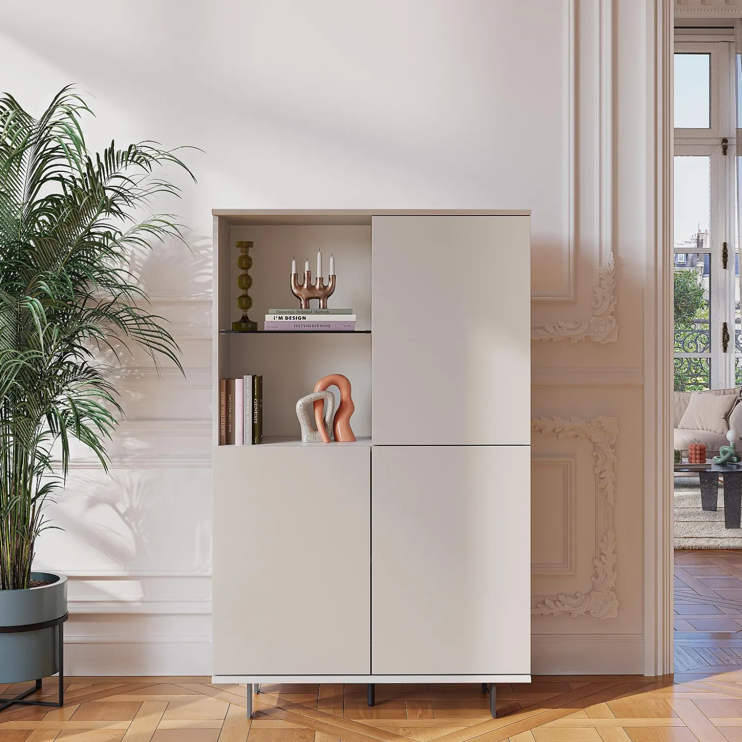 Le buffet haut Agnes associe capacité de rangement et lignes équilibrées, dans une interprétation contemporaine du mobilier fonctionnel.