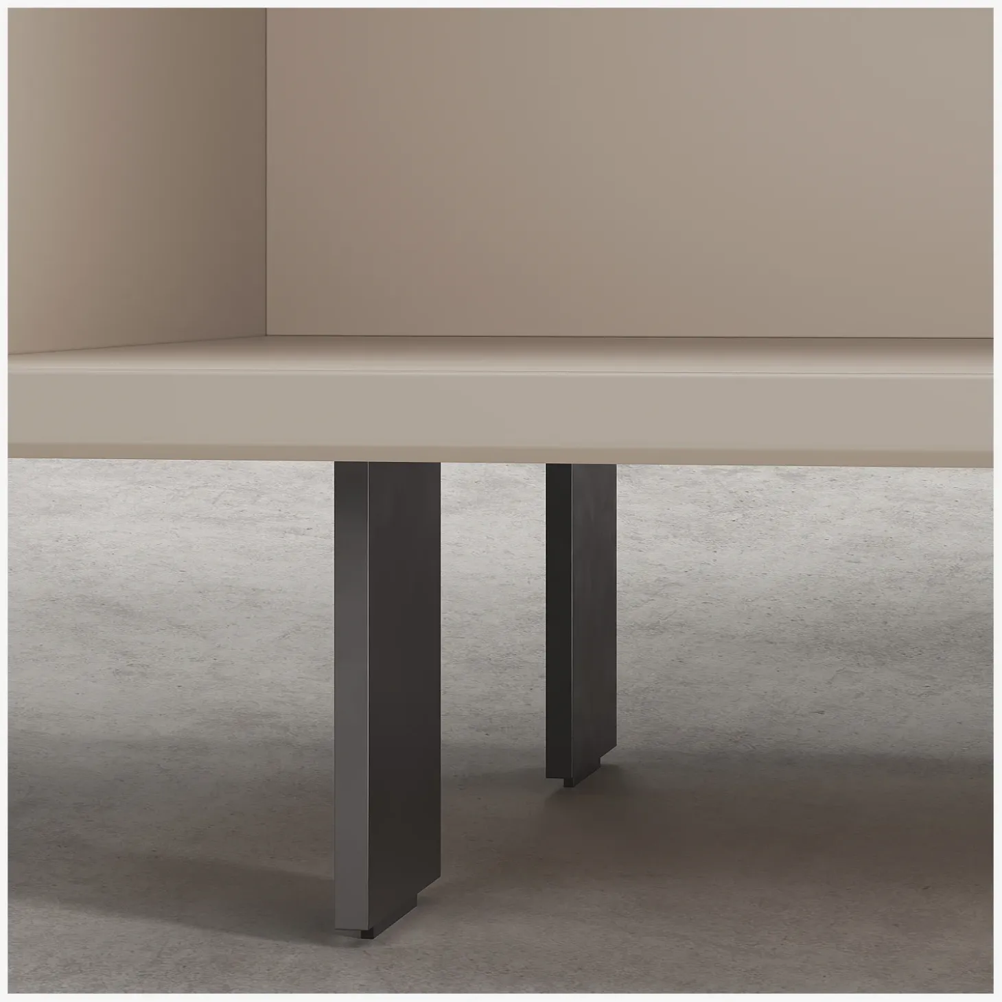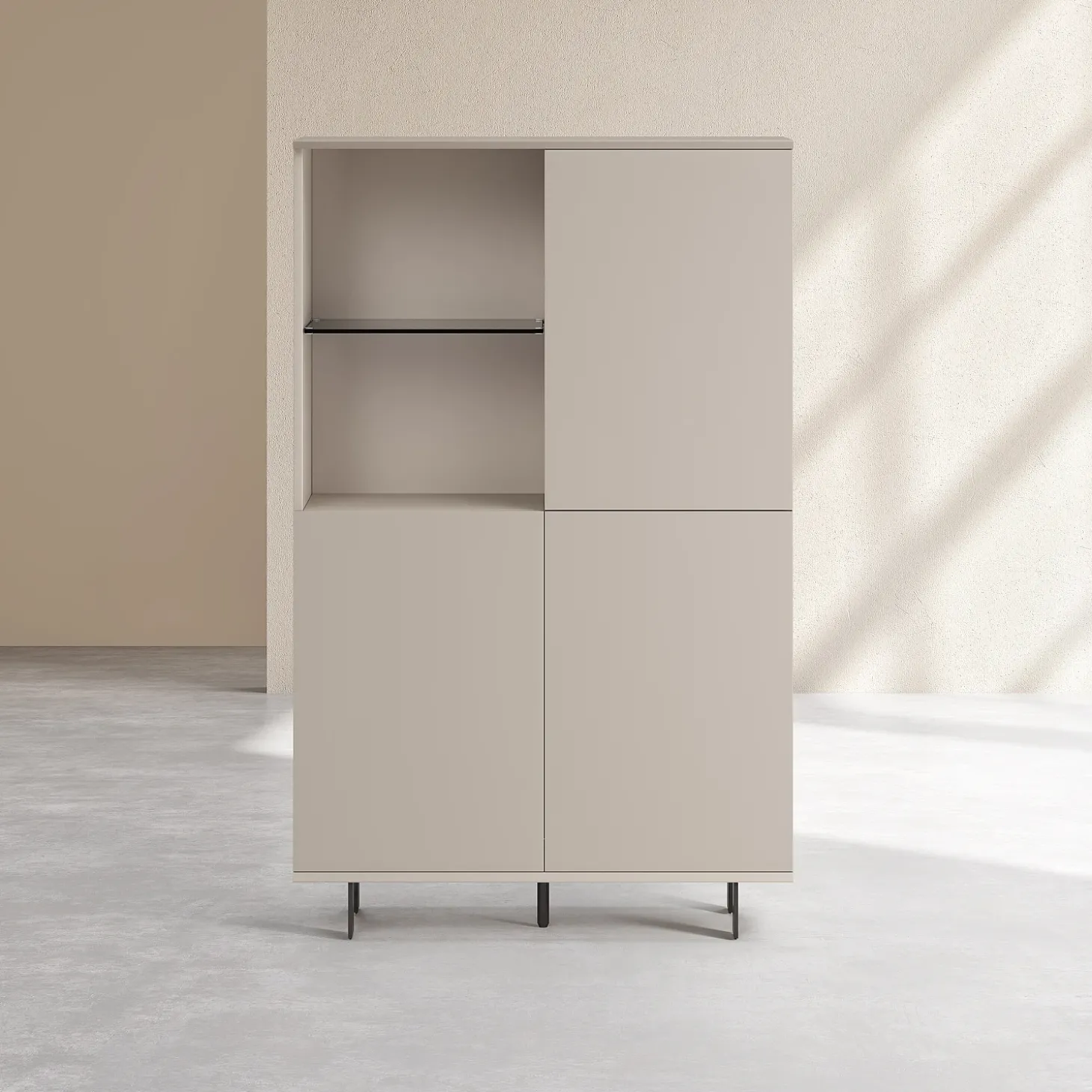 Charges maximales supportées : 30 kg pour le plateau supérieur et 10 kg par tablettes/casesDesign structuré, pieds fins et finition mate dessinent un buffet haut à l’élégance contemporaine. Une pièce pratique et équilibrée qui organise l’espace avec style.