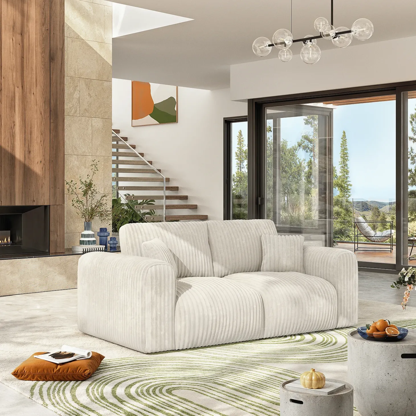Avec le canapé 3 places Aleya, la douceur s’installe dans le salon. Se laisser envelopper par le toucher fabuleusement doux de son tissu côtelé est une invitation à la relaxation et au repos pour un moment cosy.