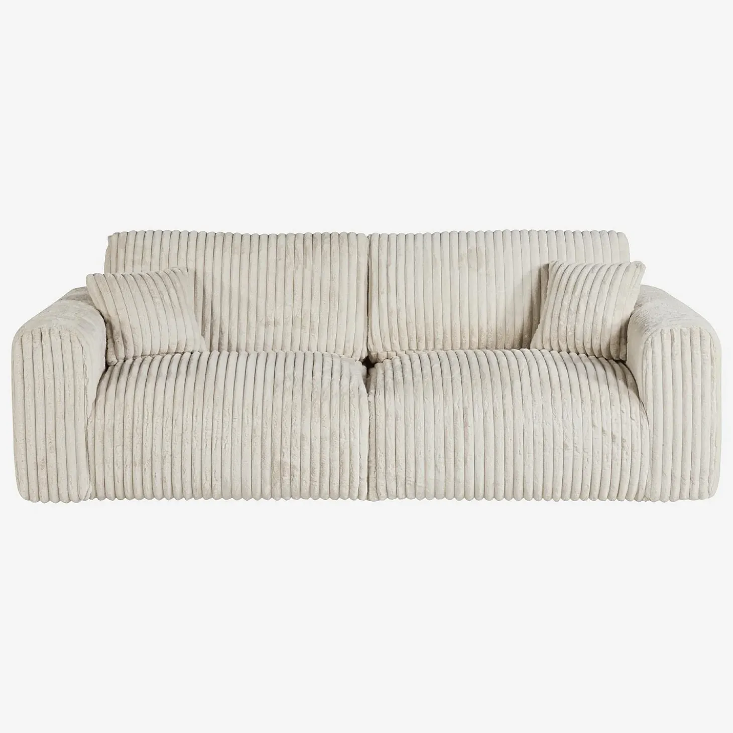 Ses accoudoirs épais offrent un soutien généreux, faisant de ce canapé un véritable cocon. Les coussins décoratifs assortis enrichissent l’ensemble d’une cohérence élégante et d’un confort supplémentaire.