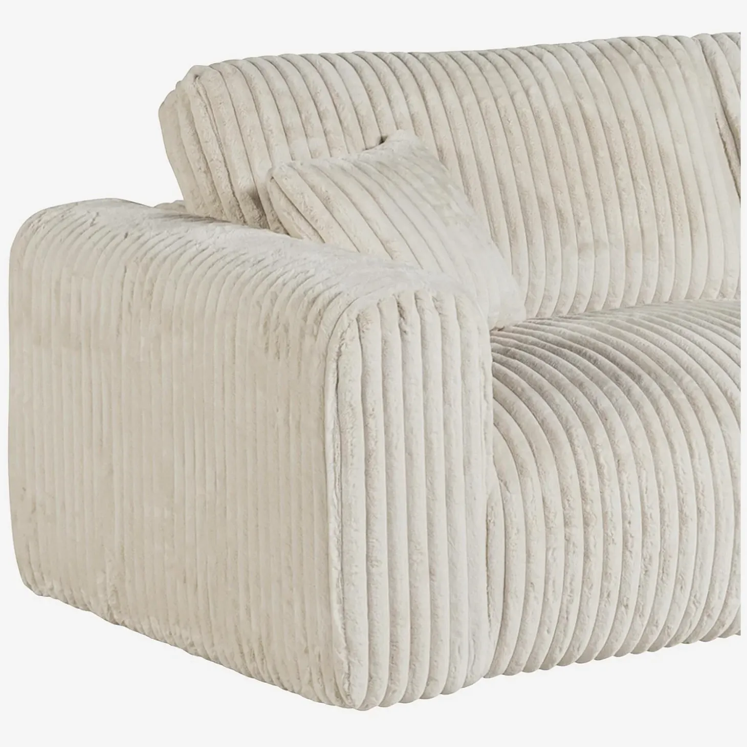 Avec le canapé 4 places Aleya, la douceur s’installe dans le salon. Se laisser envelopper par le toucher fabuleusement doux de son tissu côtelé est une invitation à la relaxation et au repos pour un moment cosy.