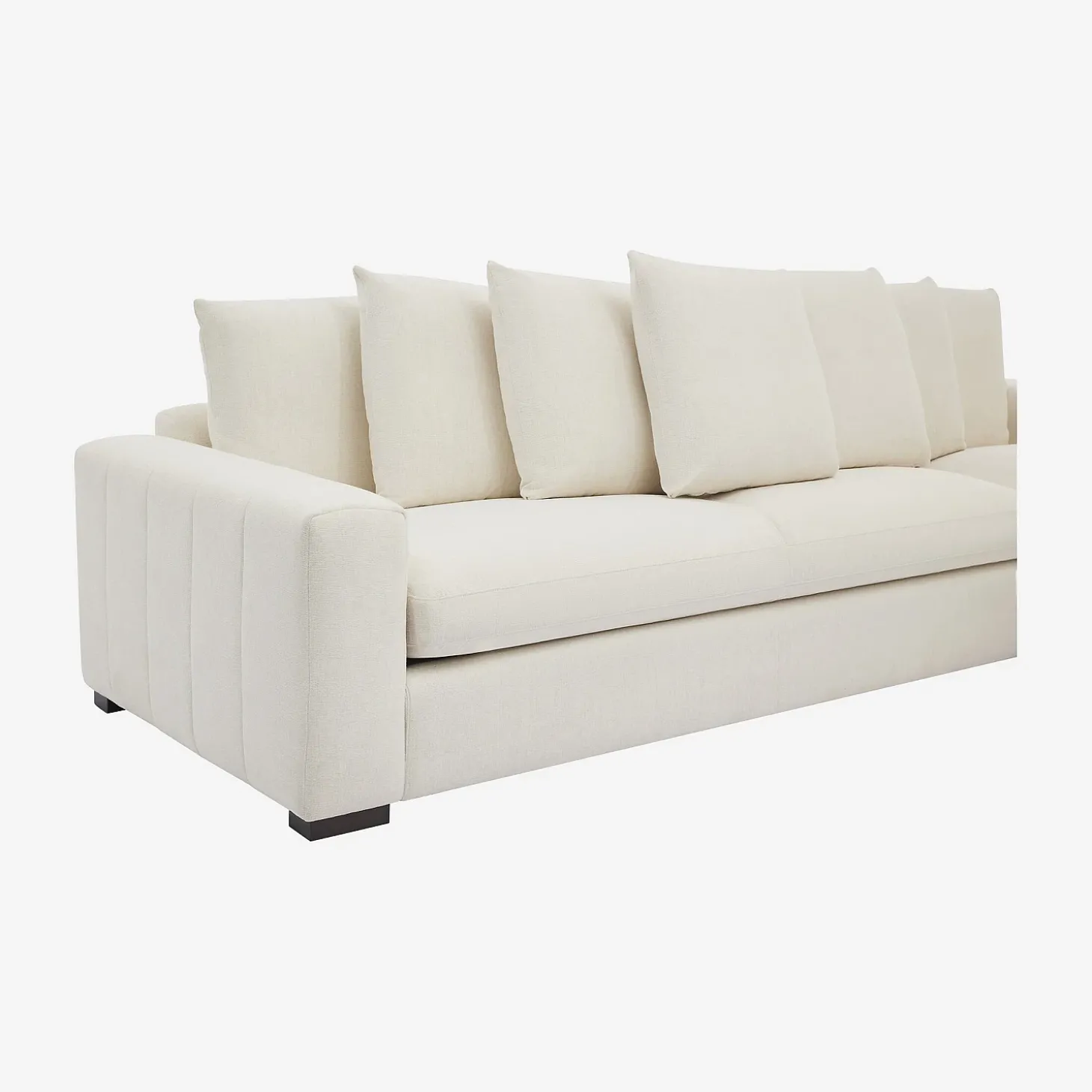 Revêtu d’un tissu ivoire lumineux, ce canapé insuffle une atmosphère douce et apaisante. L’élégante surpiqûre des accoudoirs lui ajoute une dimension design, en faisant une pièce centrale du salon.