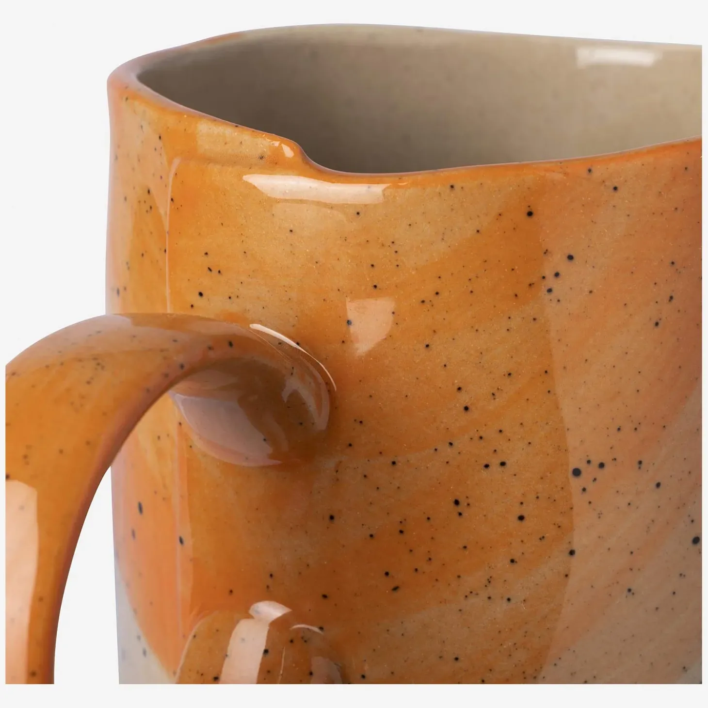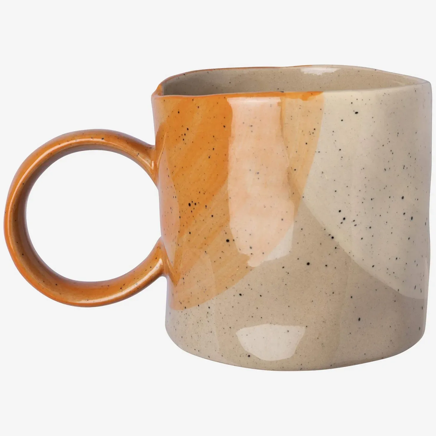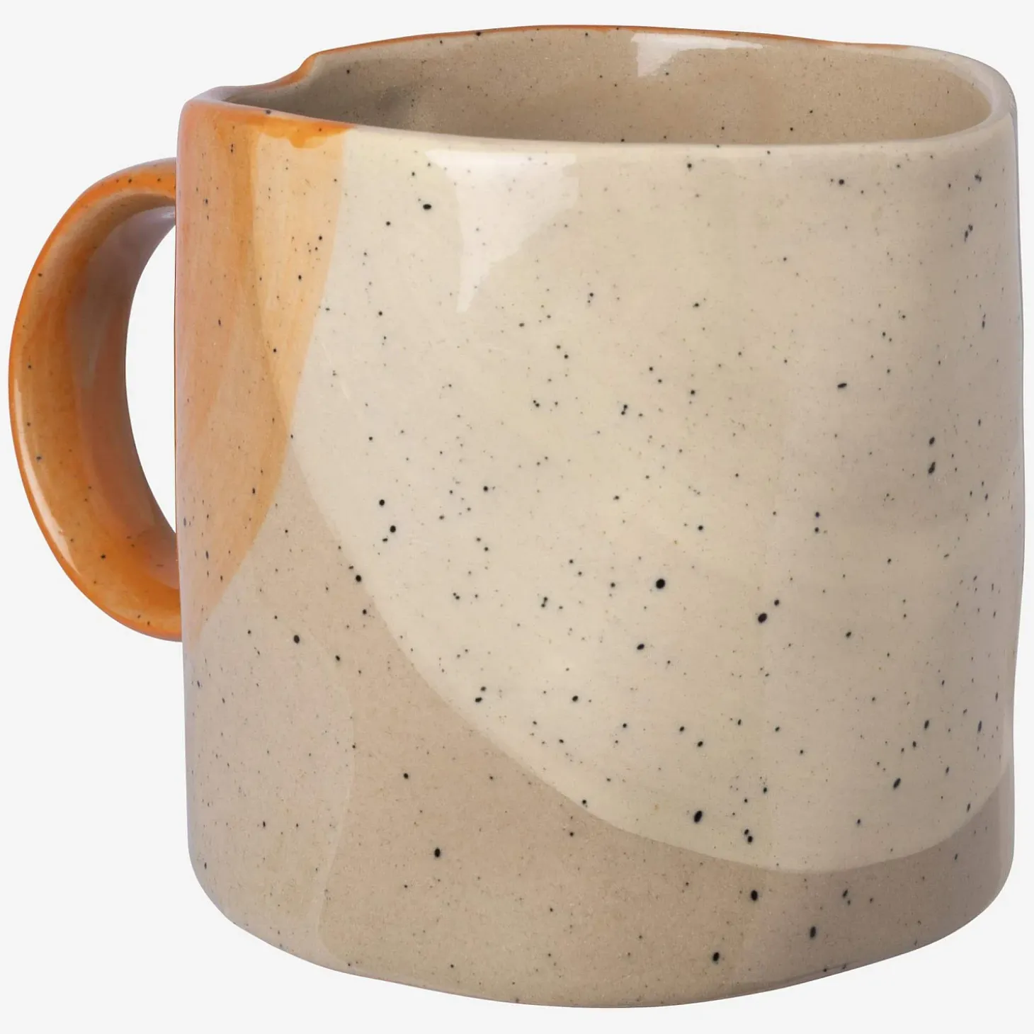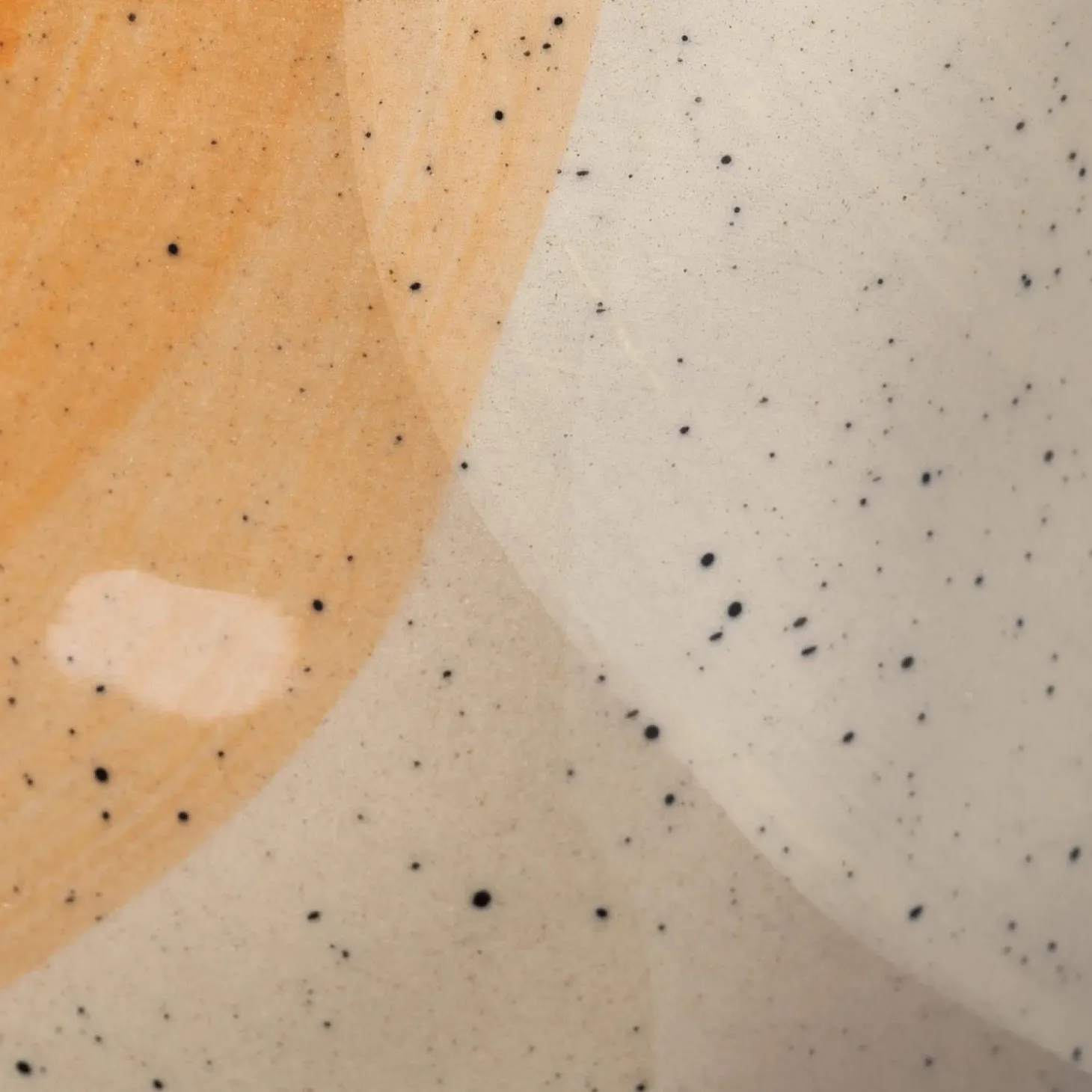 Le design éthéré de ce mug de 350ml résulte d’un procédé complexe et minutieux : il est d’abord trempé dans une glaçure transparente puis peint à la main dans deux tons de couleurs avant d’être moucheté de noir. Une douce couleur orange borde ce mug jusqu’à l’anse et vient sublimer son allure.