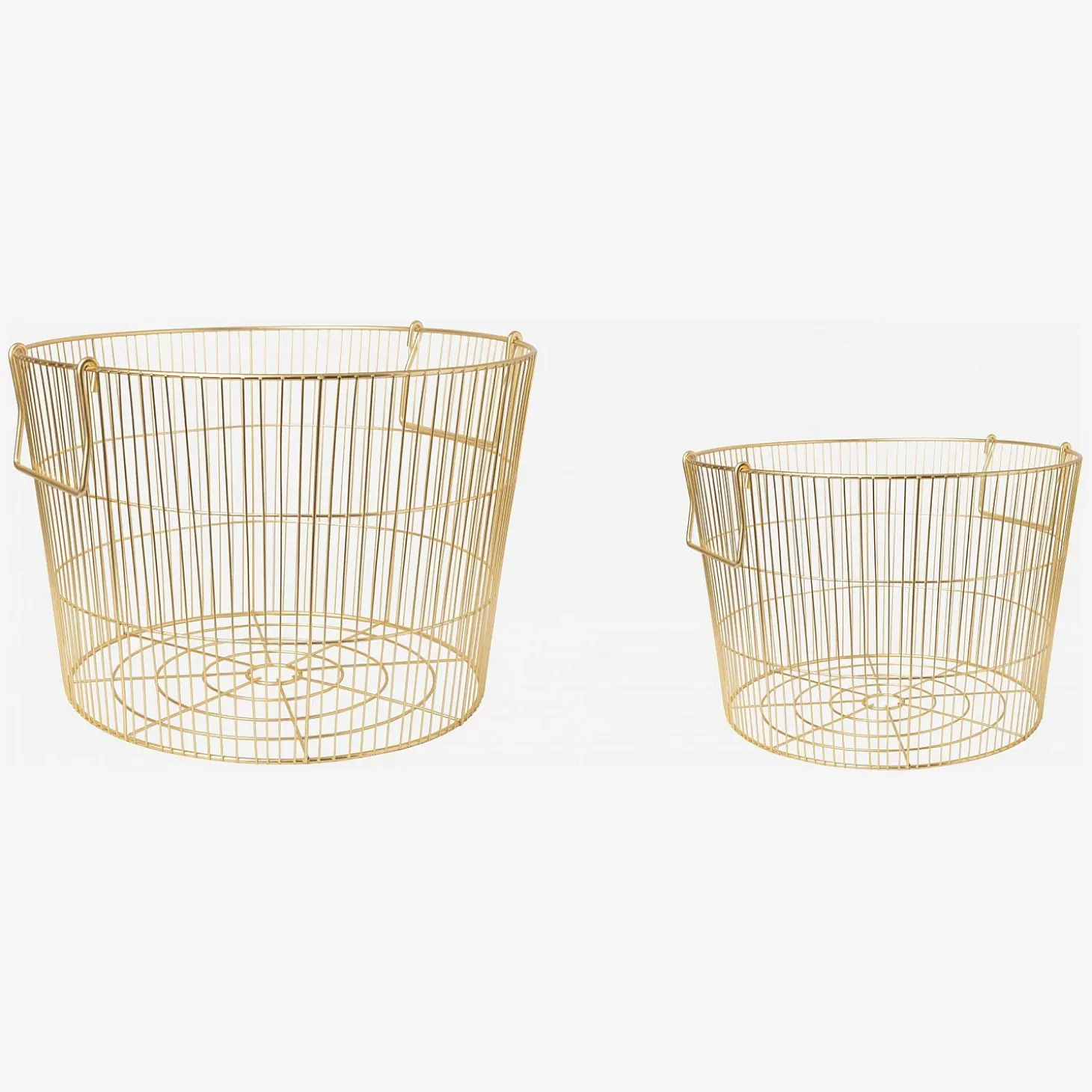 Ce lot de 2 paniers de rangement Alo est fabriqué en métal, gage de solidité et de durabilité. Habillé d’une belle couleur dorée qui souligne leur élégance, ces paniers offrent de grands volumes de stockage.