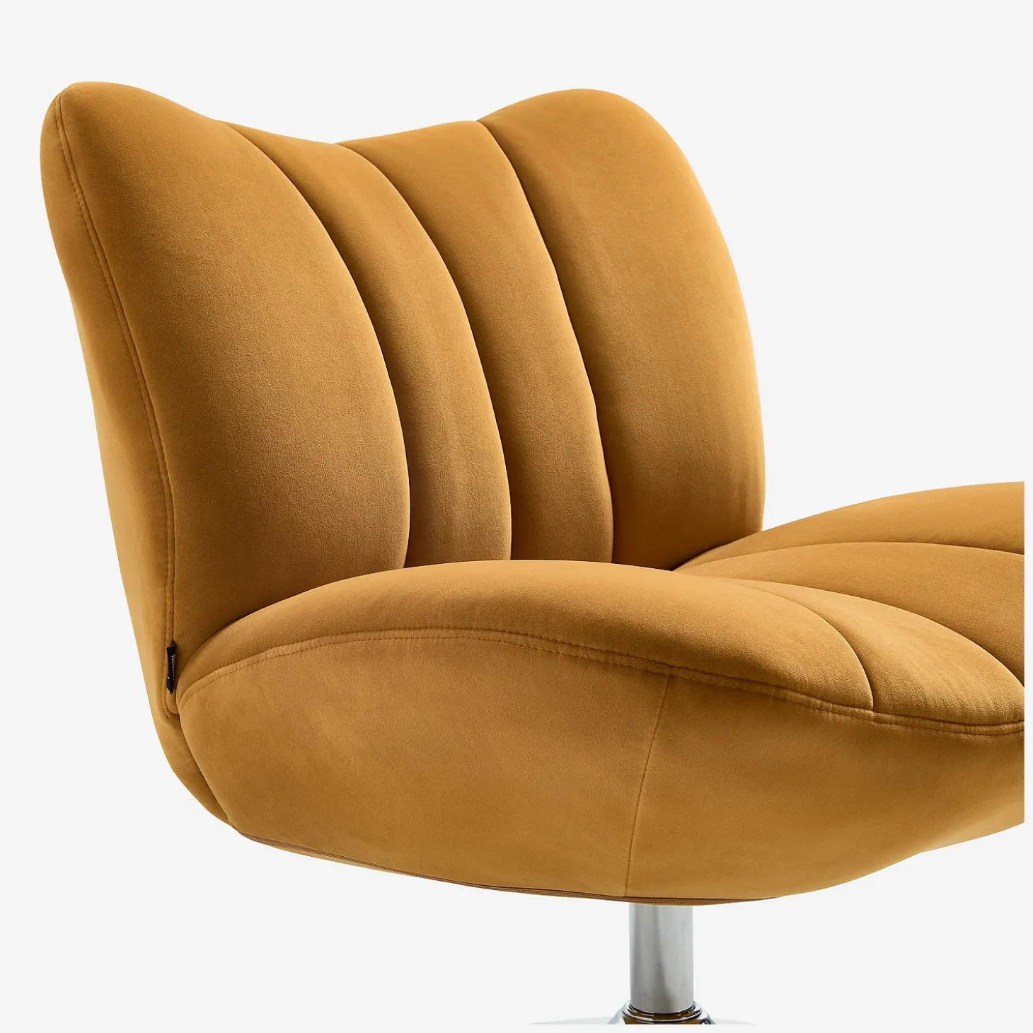 Revêtu d’un tissu velouté au toucher délicat, il incarne une assise d’appoint aussi esthétique que fonctionnelle. Son coloris miel lumineux diffuse une chaleur douce et ensoleillée dans l’espace.