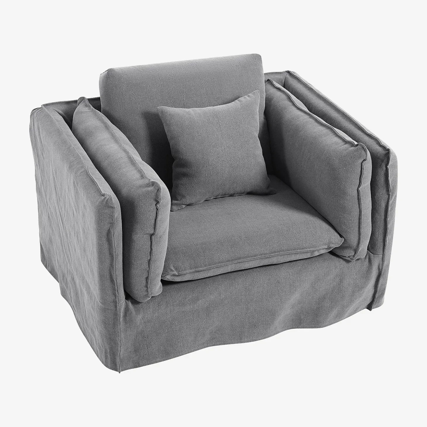 La qualité des matériaux utilisés ainsi le revêtement déhoussable rendent ce fauteuil durable et pratique. Parfait seul ou en complément du canapé de la même collection, il invite à créer un espace de détente apaisant et cohérent.