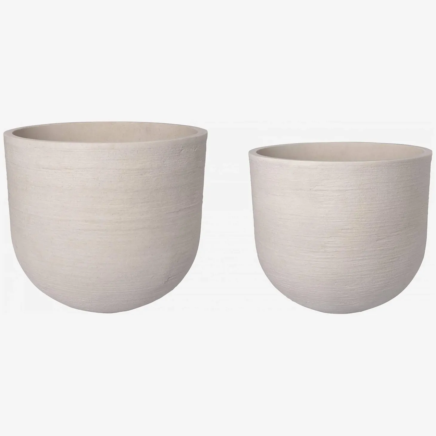 Ce set de deux cache-pots Anny se décline en différents formats afin d’accueillir des plantes de différentes tailles. Ces cache-pots en ciment sont solides et résistent au gel et à l’eau. Leur apparence est mise en valeur par une couleur beige douce et légère à la fois.