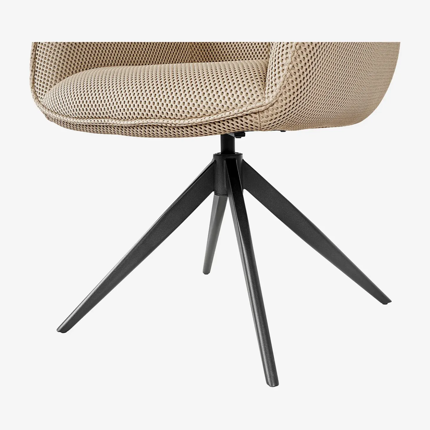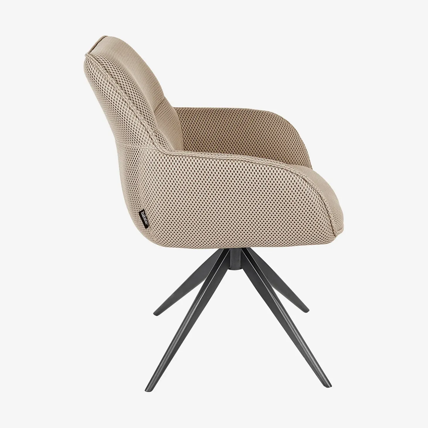 Déclinée dans un coloris beige sable naturel et élégant, la chaise Arzana est résolument actuelle, à la croisée du confort et de l’innovation textile.