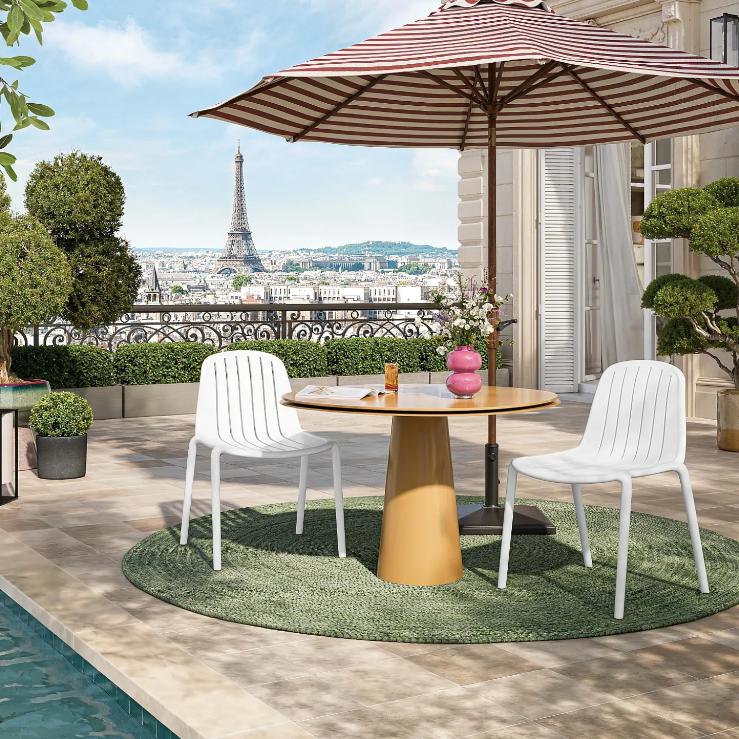 La chaise de jardin Arzon se décline en blanc opalin. Ce coloris intemporel traverse les saisons et s’accorde harmonieusement avec toutes les palettes de couleurs. Pratiques et fonctionnelles, ces chaises sont empilables jusqu’à 4 unités pour un gain de place optimal.