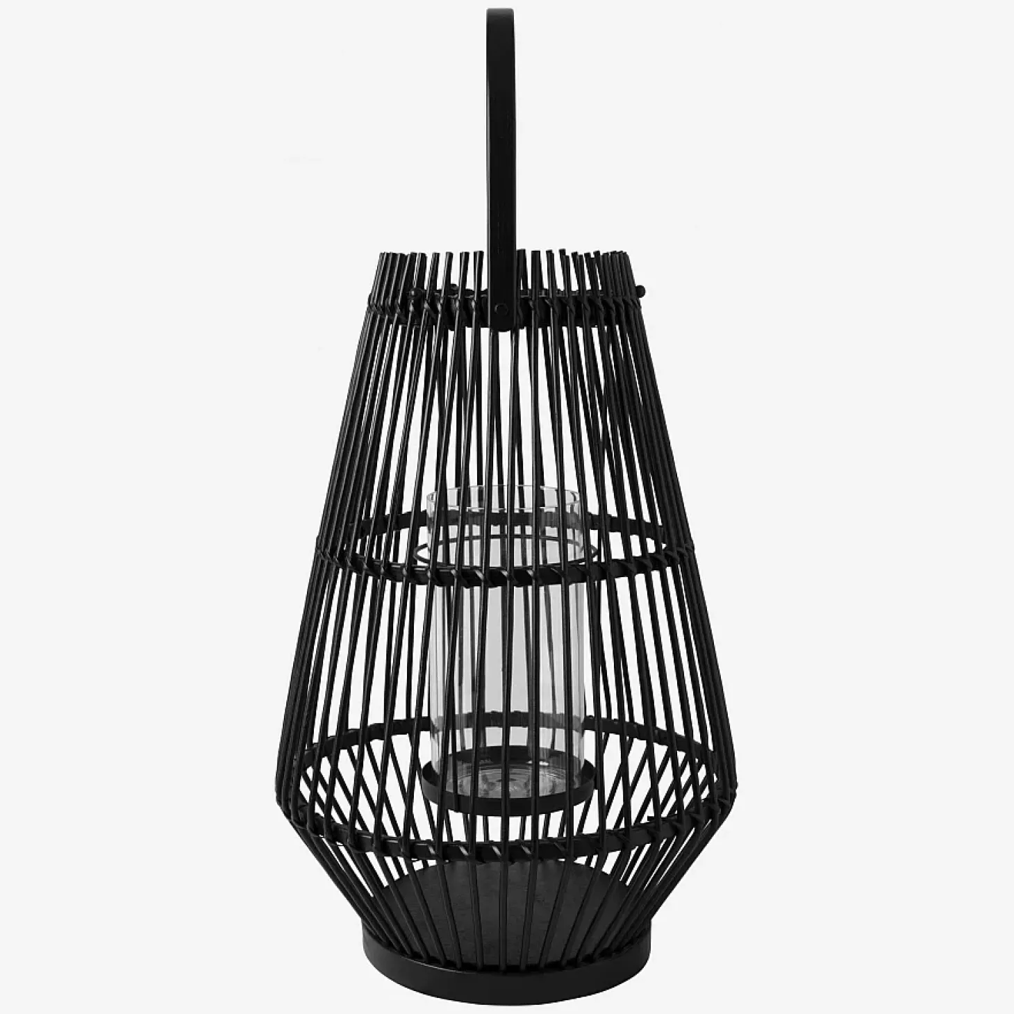 Cette lanterne en bambou de 26×40 cm contient en son centre un support en verre dont les dimensions conviennent aux bougies cylindriques de la gamme <dynamiclink target=