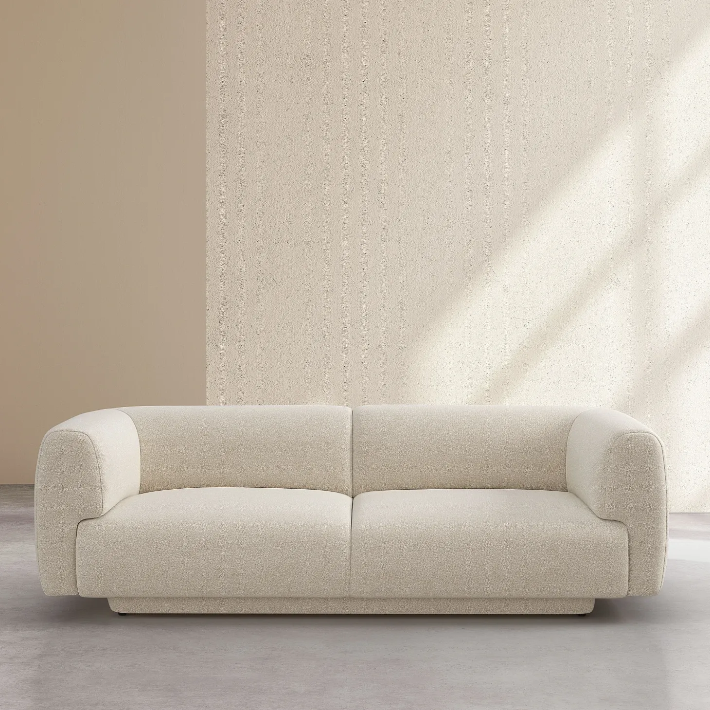 Le canapé 3 places Austin en tissu texturé beige vanille est idéalement pensé pour créer un espace propice au bien-être dans une atmosphère chaleureuse. Son revêtement travaillé donne du relief à sa teinte discrète et apaisante.