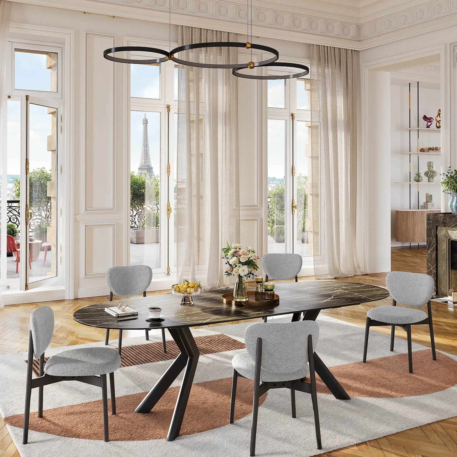 Charge maximale supportée : 120 kgAzma associe dossier arrondi, tissu chiné subtil et piètement en bois noir pour un confort tout en nuances. Un duo contemporain qui équilibre douceur visuelle et caractère graphique, à l’aise dans tous les espaces.