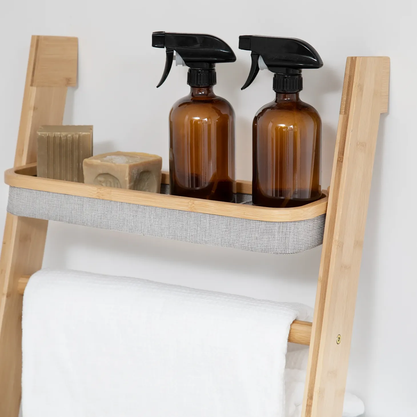 Tissu en 76% polyester et 24% cotonL’étagère de salle de bain Barnabé conjugue bambou et tissu chiné dans un design échelle aussi esthétique que fonctionnel, pensé pour optimiser vos rangements.