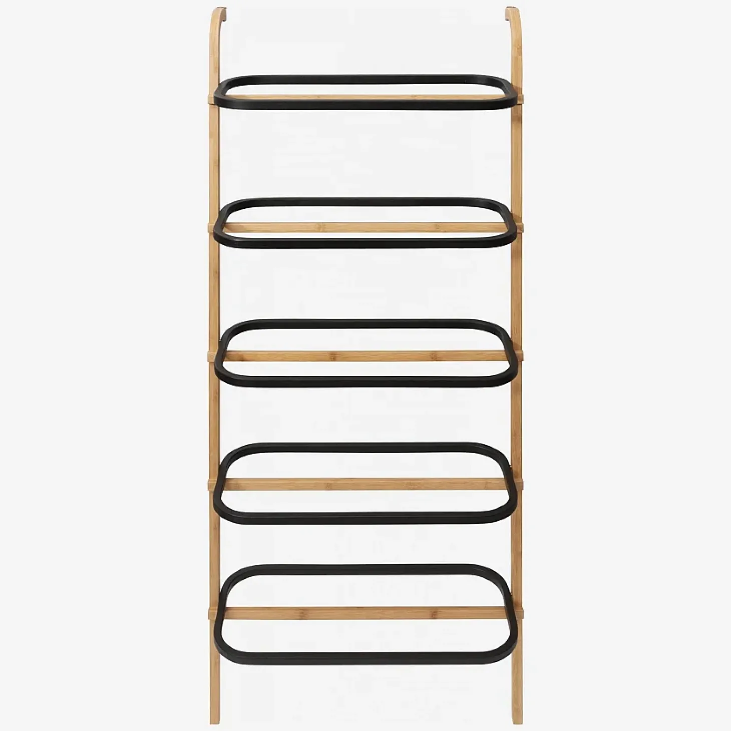 En bambou et métalBarnabé associe bambou naturel et étagères métalliques dans un porte-chaussures suspendu compact. Une solution astucieuse pour ranger jusqu’à 15 paires tout en libérant de l’espace au sol.