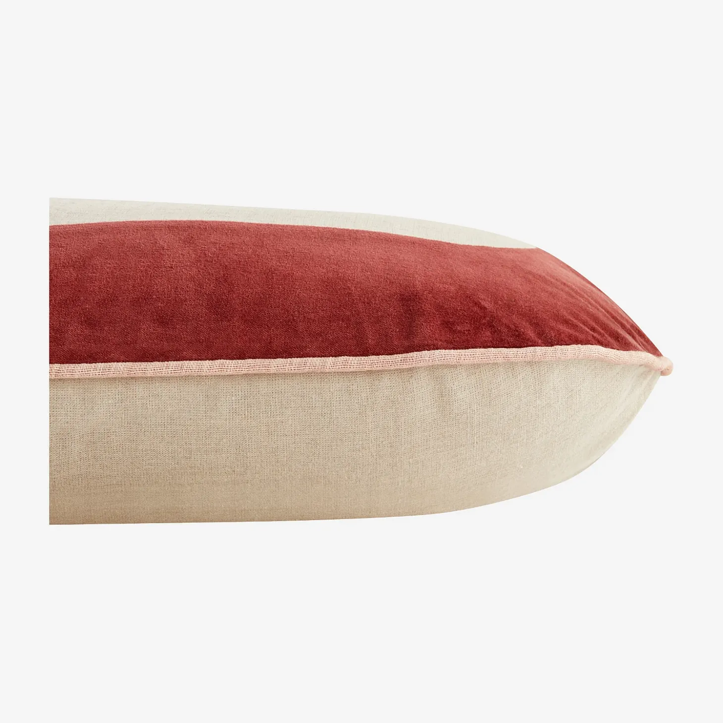 Avec sa forme allongée et ses matières naturelles, le coussin Bérénice joue la carte de l’élégance discrète.