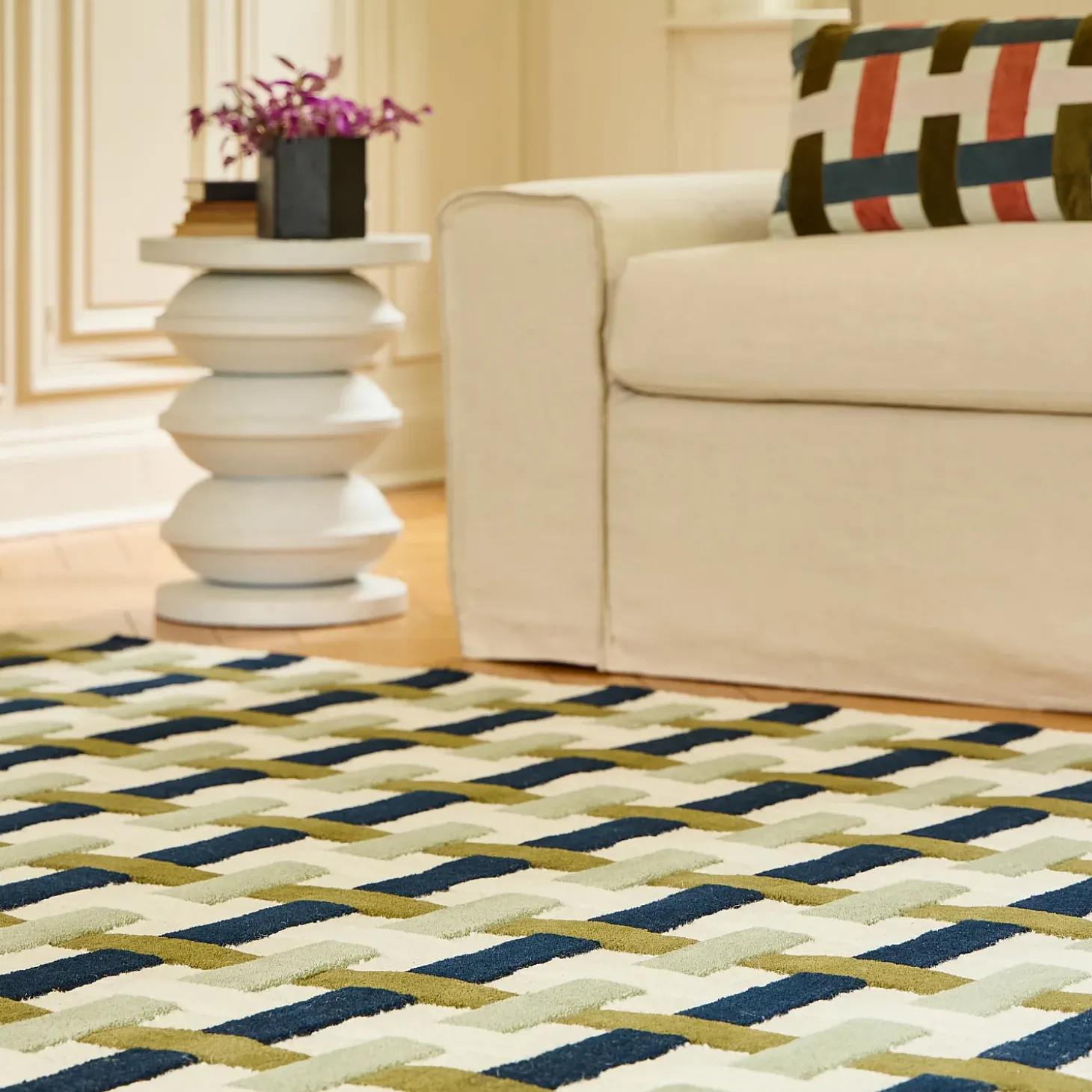 Le tapis Bertin, en laine tuftée, fabriqué artisanalement en Inde, séduit par son design élégant et intemporel.