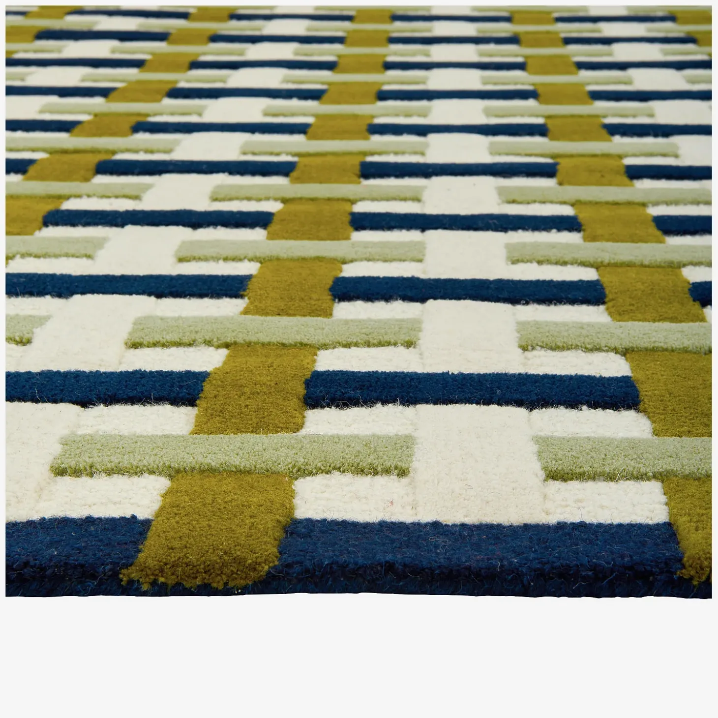 Les motifs, inspirés du tressage, créent un effet visuel raffiné qui souligne la richesse de la texture. Les tons écru et vert s’entrelacent harmonieusement, apportant à la fois légèreté et profondeur, tout en évoquant la sérénité de la nature.