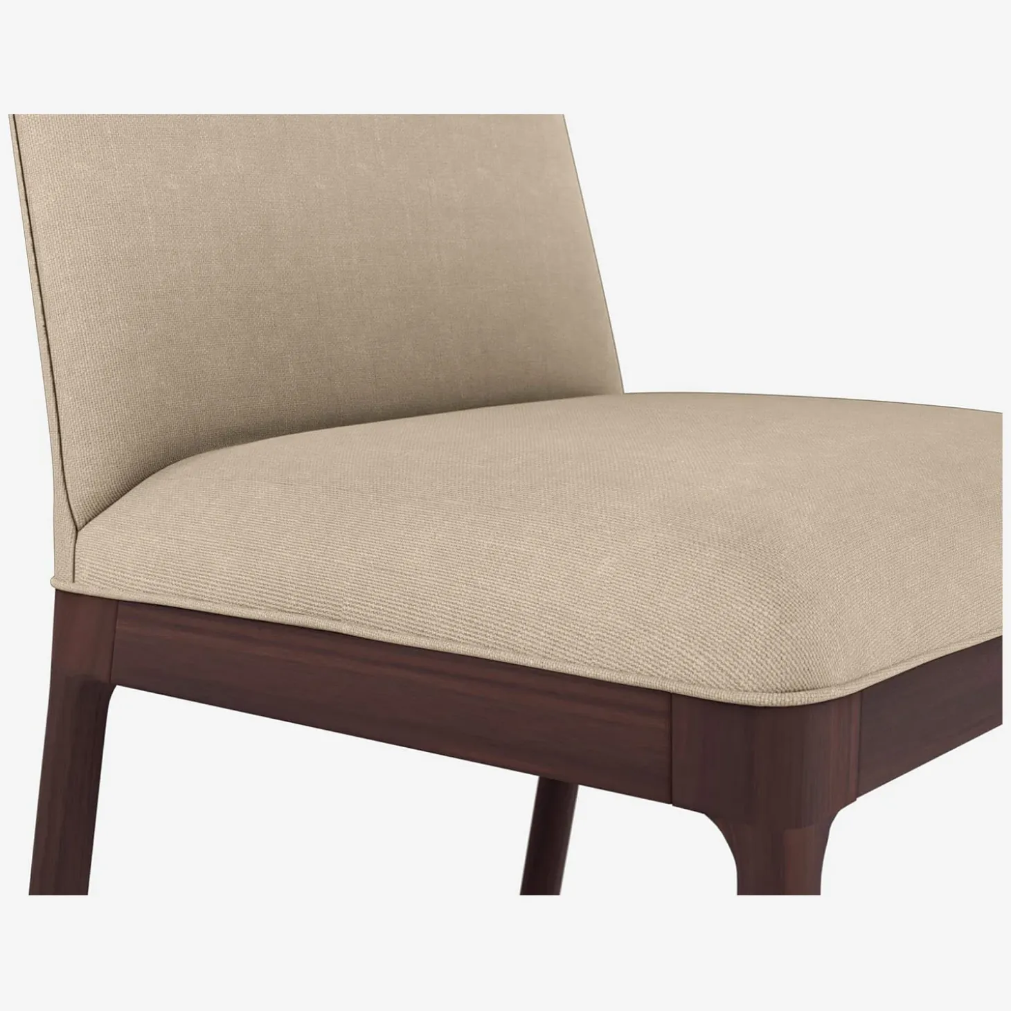 La chaise Bet en tissu grège possède un piètement en noyer. Elle offre une assise confortable grâce au garnissage de son assise et de son dossier en mousse.