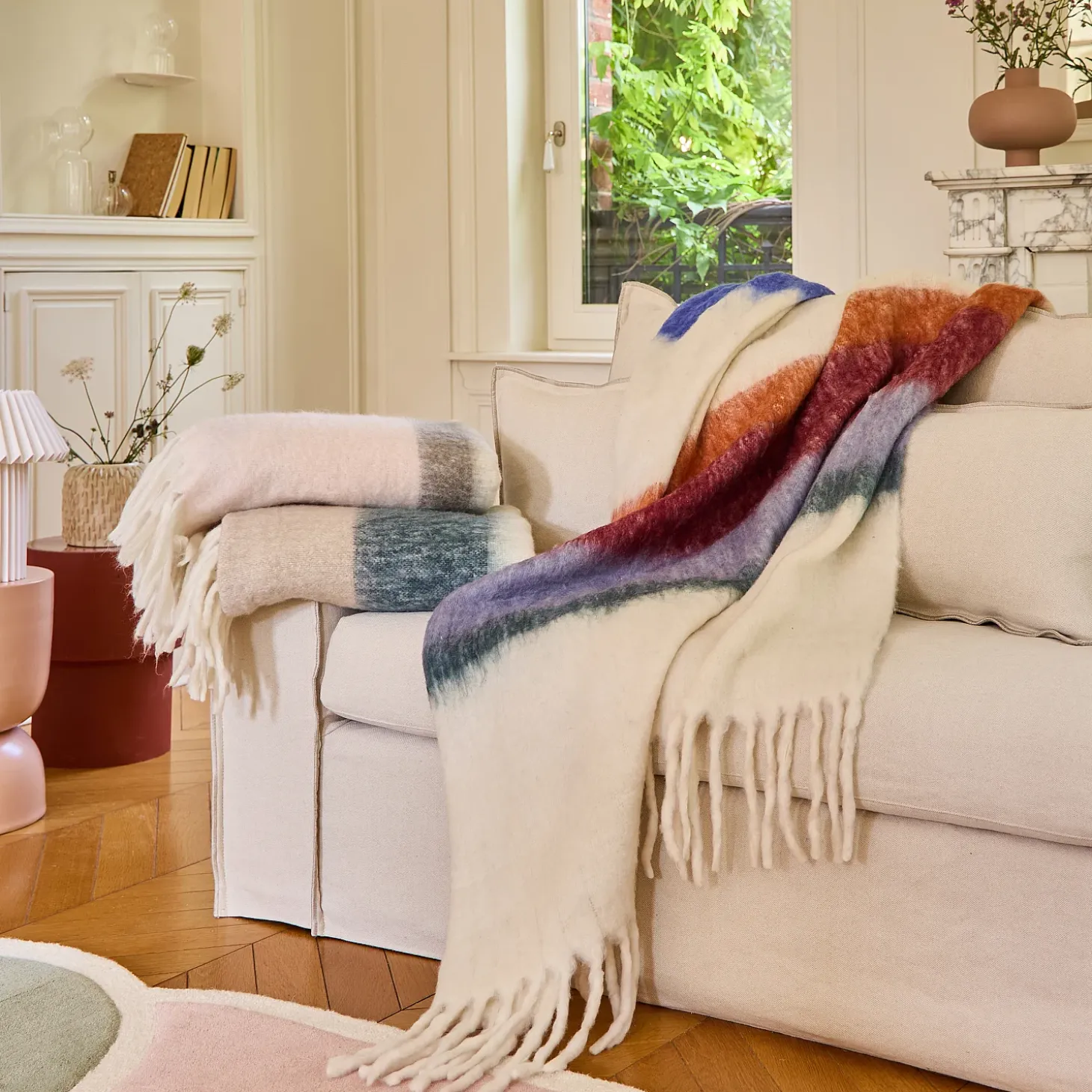 Un plaid qui, par sa texture et ses couleurs, invite à la rêverie et à la sérénité.
