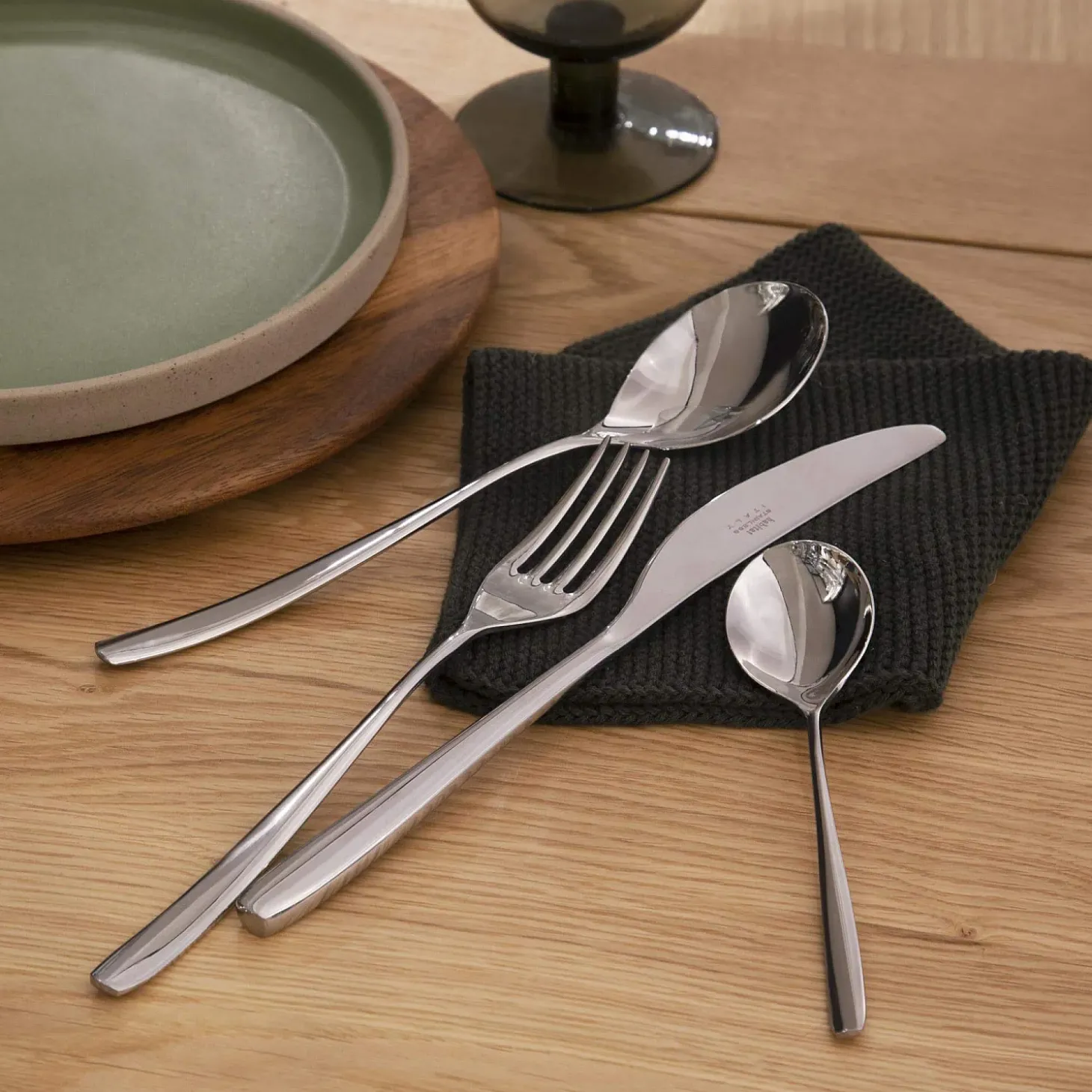 Chic et élégant, ce set de 24 couverts est composé de 6 couteaux, 6 fourchettes, 6 cuillères à soupe et à café. Par sa finition satinée, Burlo saura décorer votre table gracieusement.