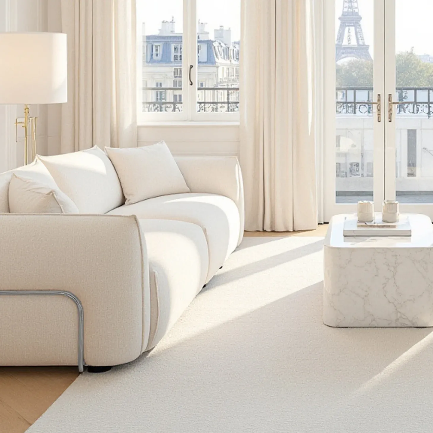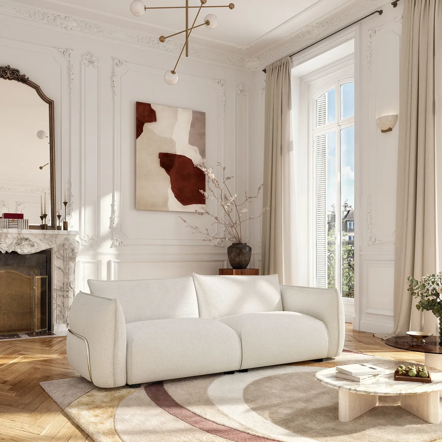 Le canapé 3 places Celeste en tissu écru apporte un subtil mélange d’élégance et de modernité. Son coloris lumineux et doux crée une ambiance intemporelle apaisante.