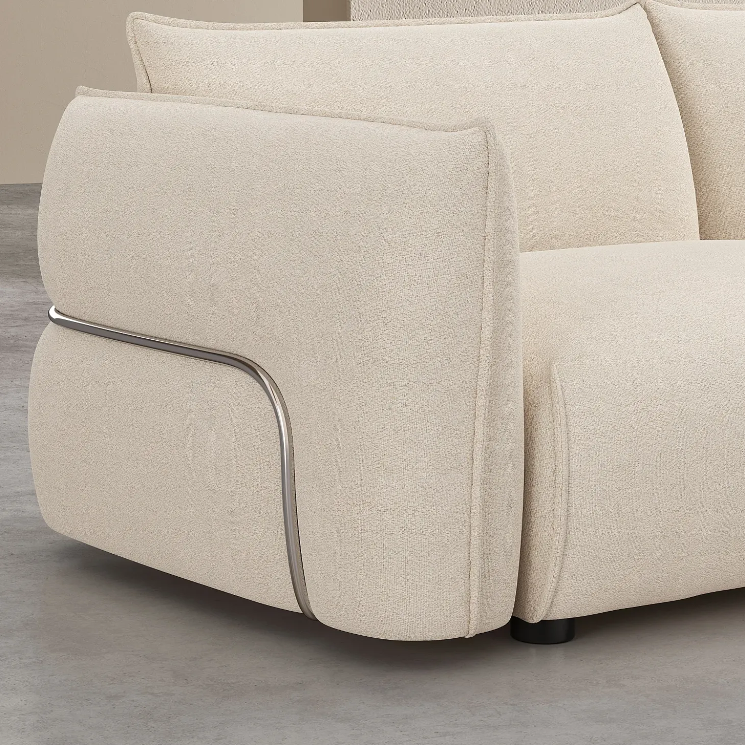 Système de fixation : crochets métalliques situées sur les modules permettant de les solidariser et de maintenir l’ensemble fermementTissu texturé, lignes épurées et assise spacieuse font de Céleste une pièce phare du salon. Une création qui sublime naturellement les intérieurs contemporains.