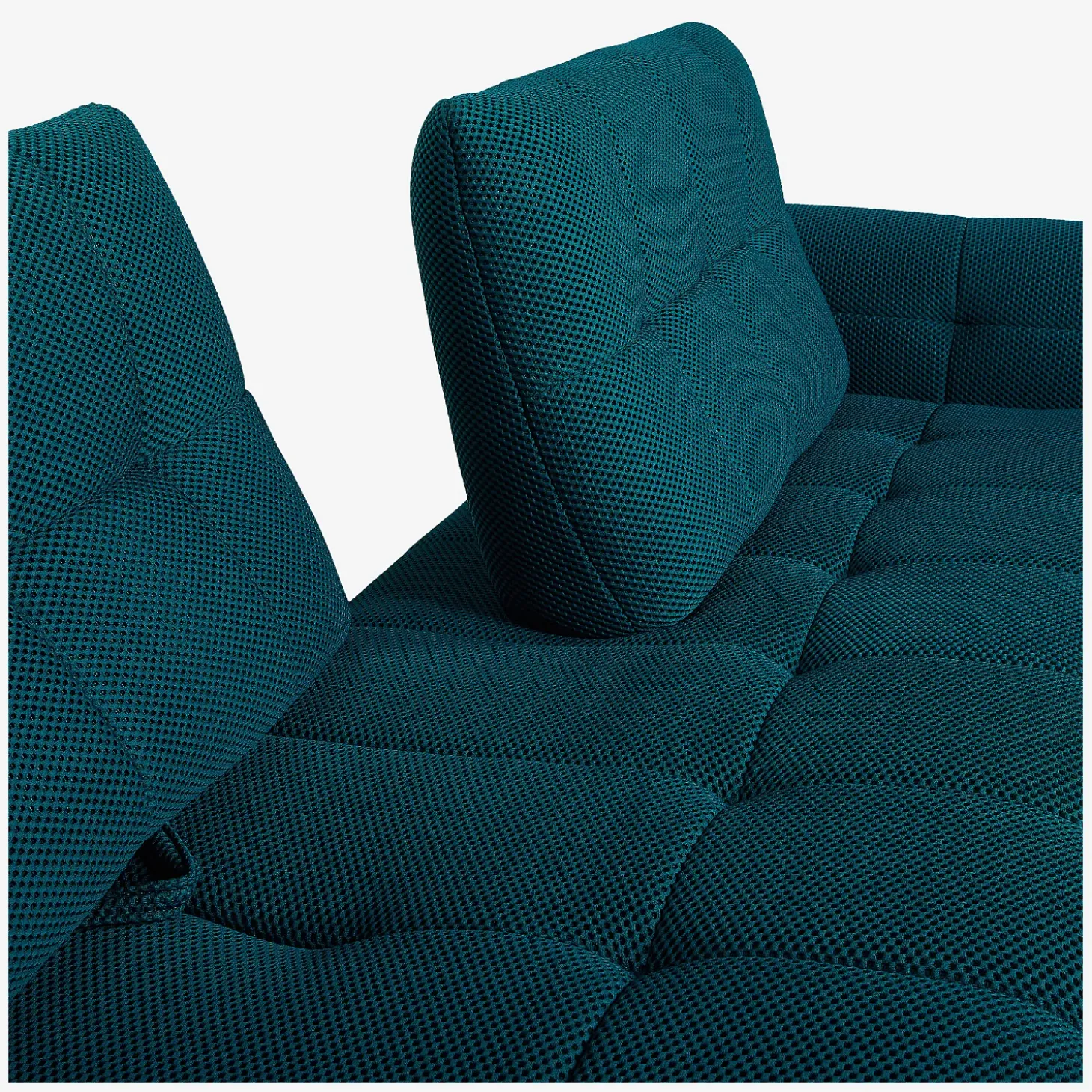 Pièce maîtresse du salon, le canapé 3 places Chety pensé par Roberto Bendini arbore un revêtement unique en tissu 3D qui apporte du cachet à l’espace grâce au relief de ses mailles. Alvéolé et audacieux, ce matériau combine design et technologie de pointe. Conçu pour être confortable, il est également léger, élastique et doté d’une résistance exceptionnelle aux altérations, garantissant une robustesse durable. Son maillage tridimensionnel lui confère des propriétés respirantes, assurant une perméabilité à l’air et une régulation thermique optimale. Sa teinte bleu canard vibrante réhausse sa modernité avec élégance.