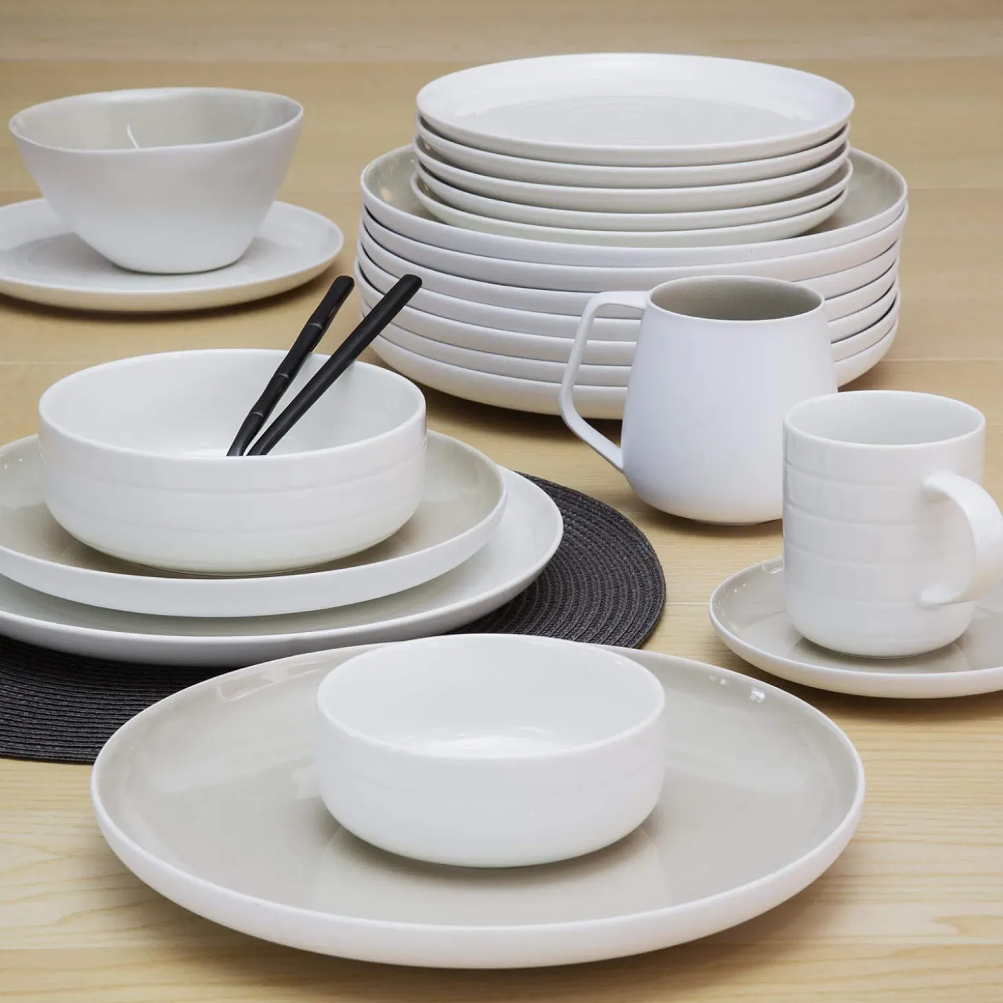 La ligne de vaisselle Clara se distingue par ses formes organiques, rondes et irrégulières. Son esthétique sensuelle, renforcée par un toucher soyeux particulièrement agréable, en font une vaisselle délicate. Le contraste de l’émail et du grès brut ainsi que ses couleurs naturelles lui confèrent un style authentique et minimaliste. Le grès est soigneusement travaillé à la main, ce qui rend chaque produit profondément unique.