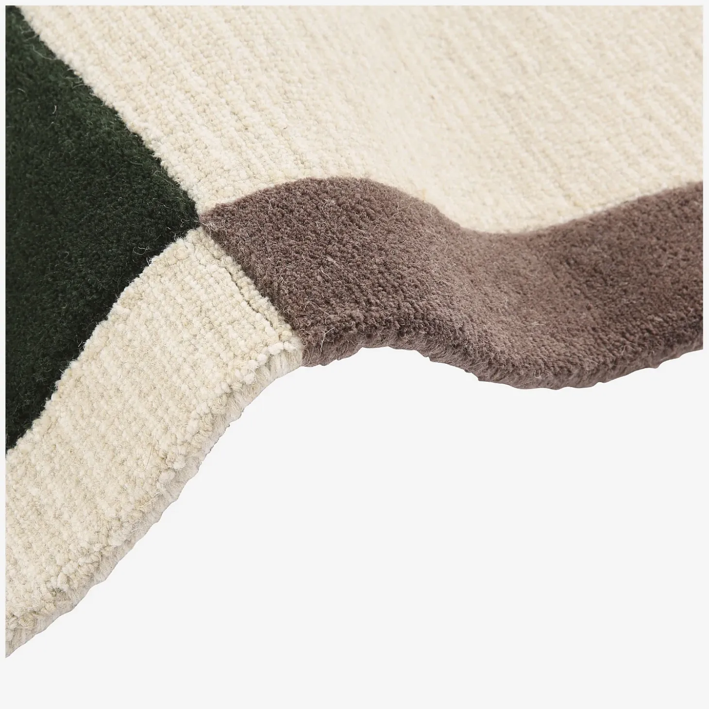Confectionné en laine tuftée main, ce tapis met en valeur un motif géométrique, notamment composé d’un vert forêt profond qui contraste avec des teintes sobres et naturelles. Sa texture douce et dense renforce l’impact visuel de ce dessin structuré, tout en apportant confort et chaleur à l’espace.