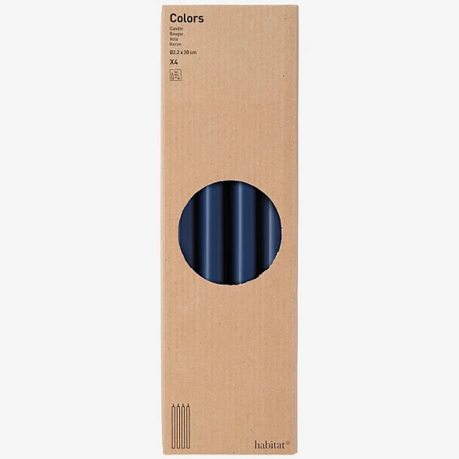 Les bougies cierges Colors de couleur bleue 30 cm de hauteur. Elles sont disponibles en lot de 4.