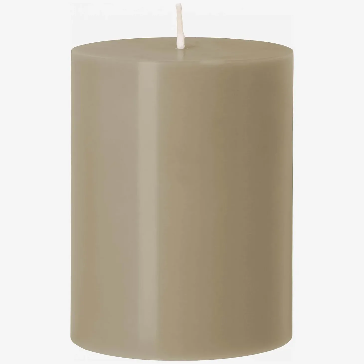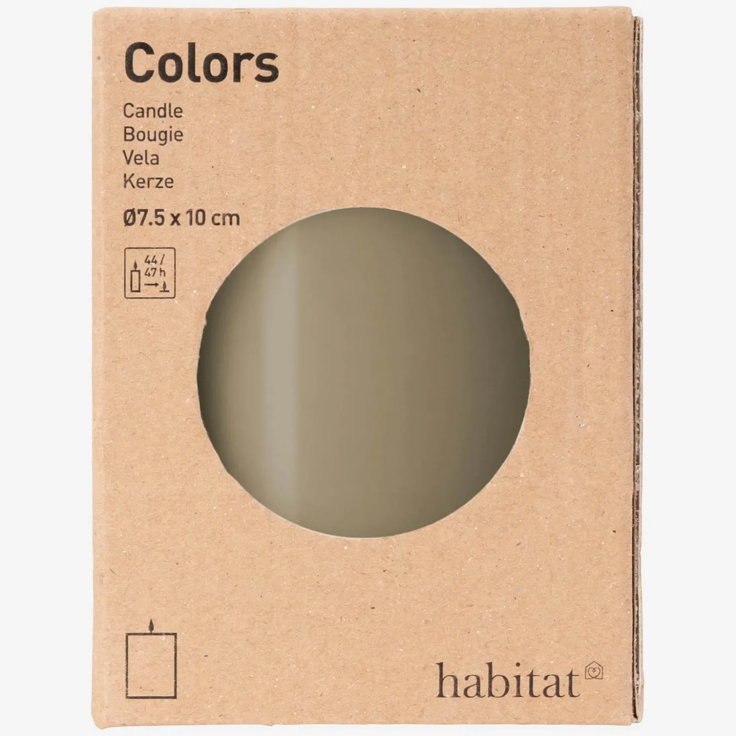 La bougie cylindrique Colors de couleur taupe mesure 7,5 cm de diamètre et 10 cm de hauteur.