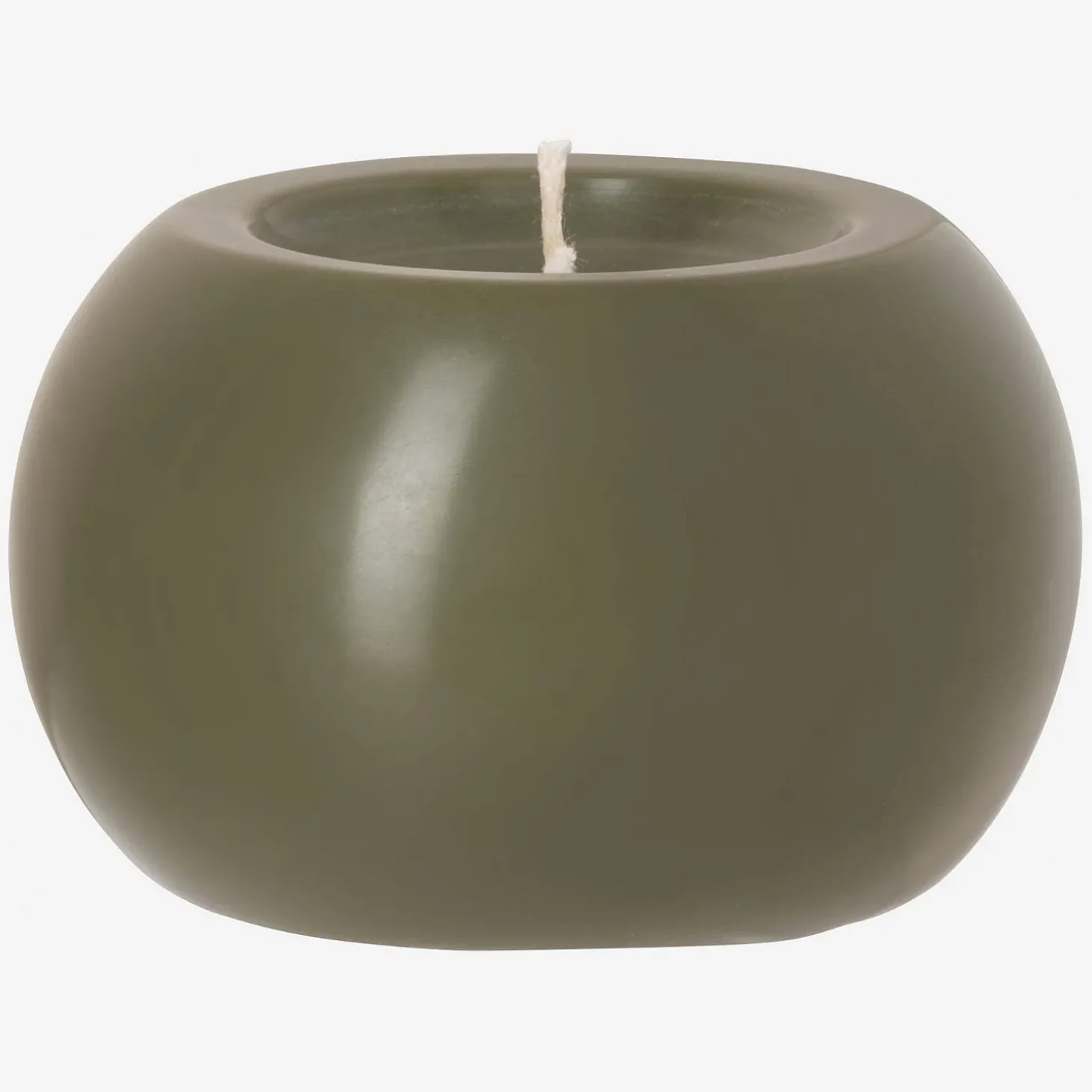 La bougie boule Colors de couleur kaki mesure 10 cm de diamètre et 6,5 cm de hauteur.