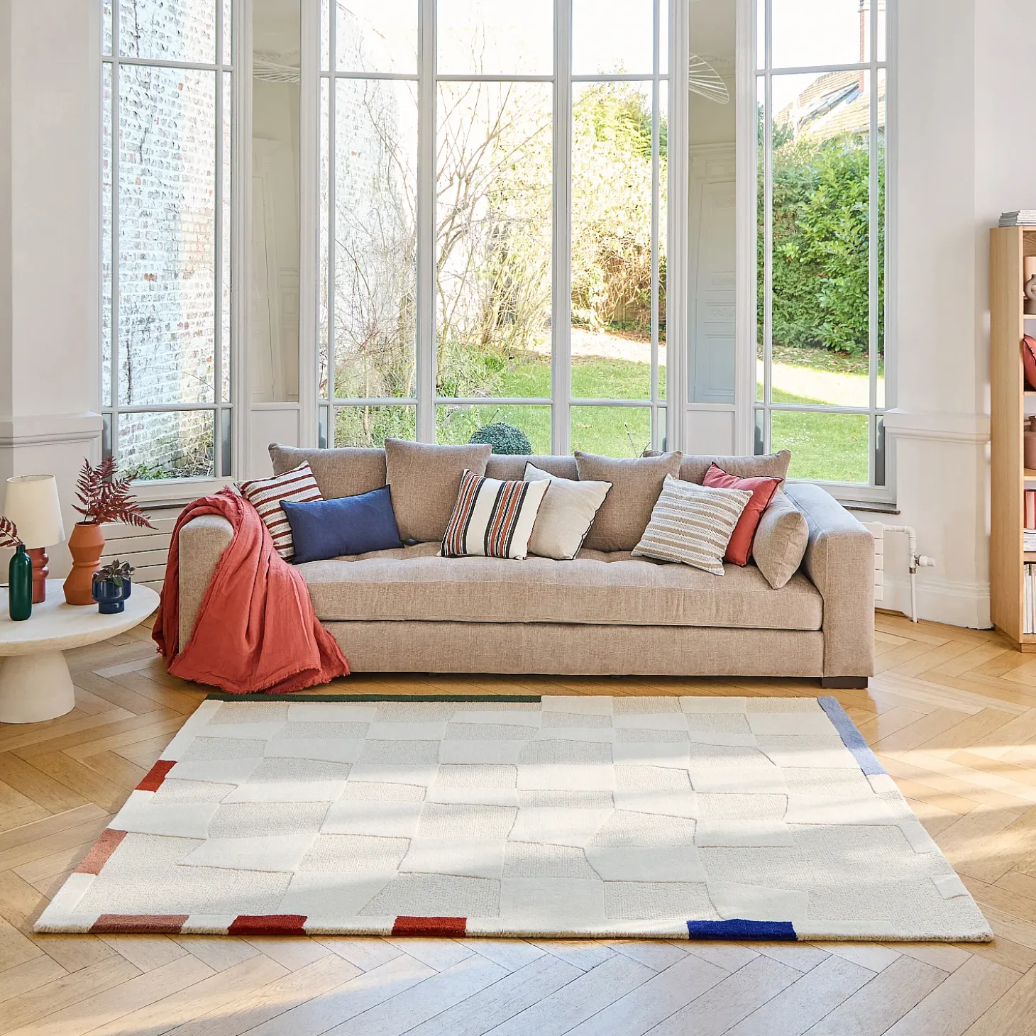 Conseils d’entretien : nettoyer les tâches avec un chiffon humide, laver à secLe tapis Côme revisite le damier avec un motif déstructuré. Rehaussé de touches colorées, il réchauffe l’atmosphère tout en conjuguant confort et modernité.