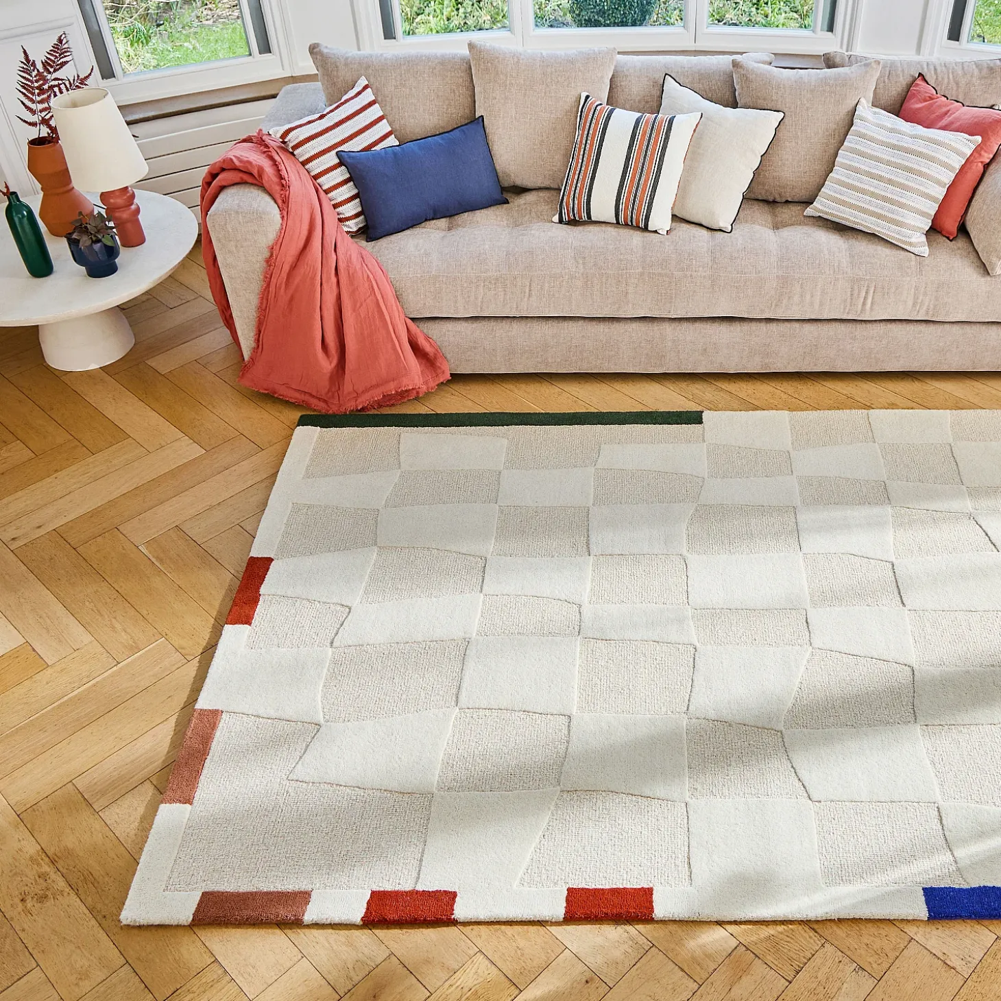 Inspiré du damier, le tapis Come réinvente un motif classique avec une approche déstructurée.