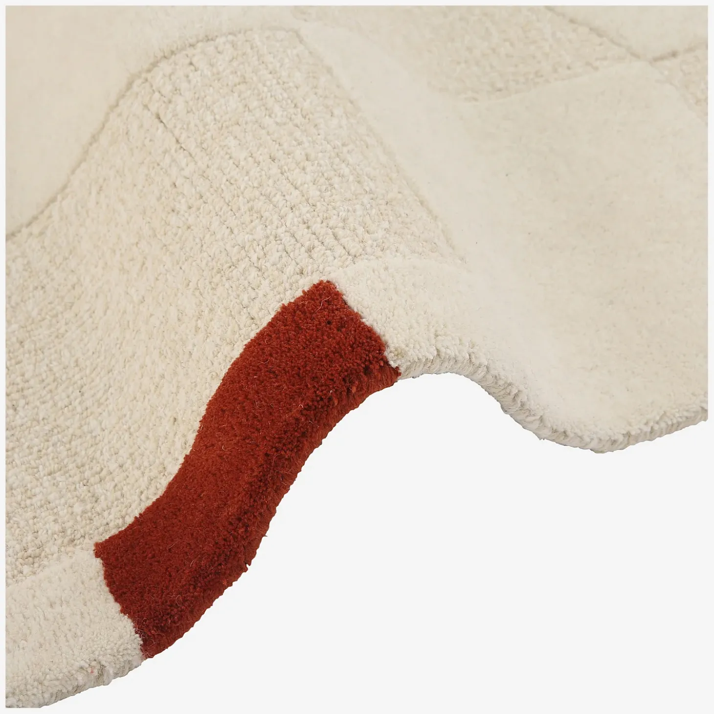 Chaque fibre s’entrelace de manière subtile, entre tissage et tufting, apportant une touche de modernité. Les pointes de couleurs choisies avec soin viennent rehausser l’ensemble, lui conférant un caractère unique et chaleureux.