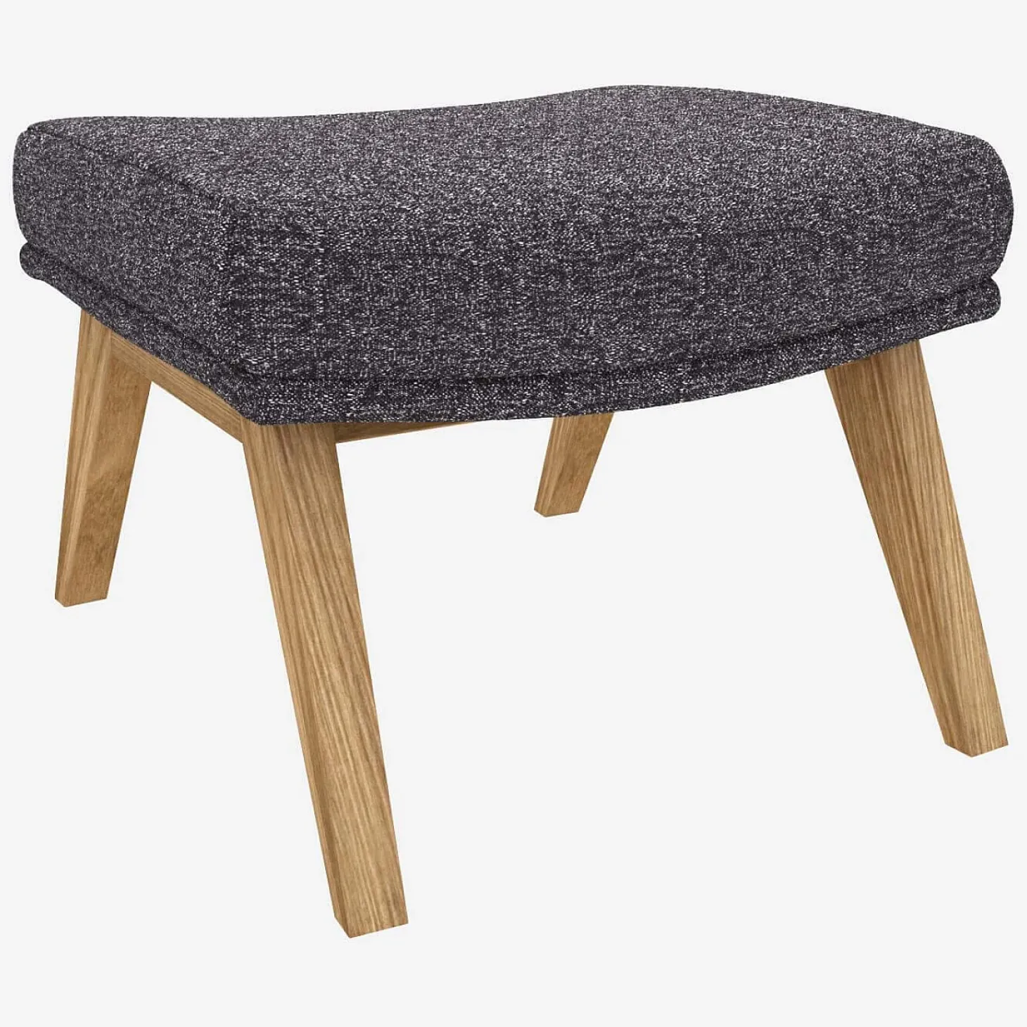 Pieds : chêne massifAvec ses courbes enveloppantes et son coussin moelleux, le repose-pieds Dena en tissu bleu zingué et pieds chêne est une véritable invitation à la détente.