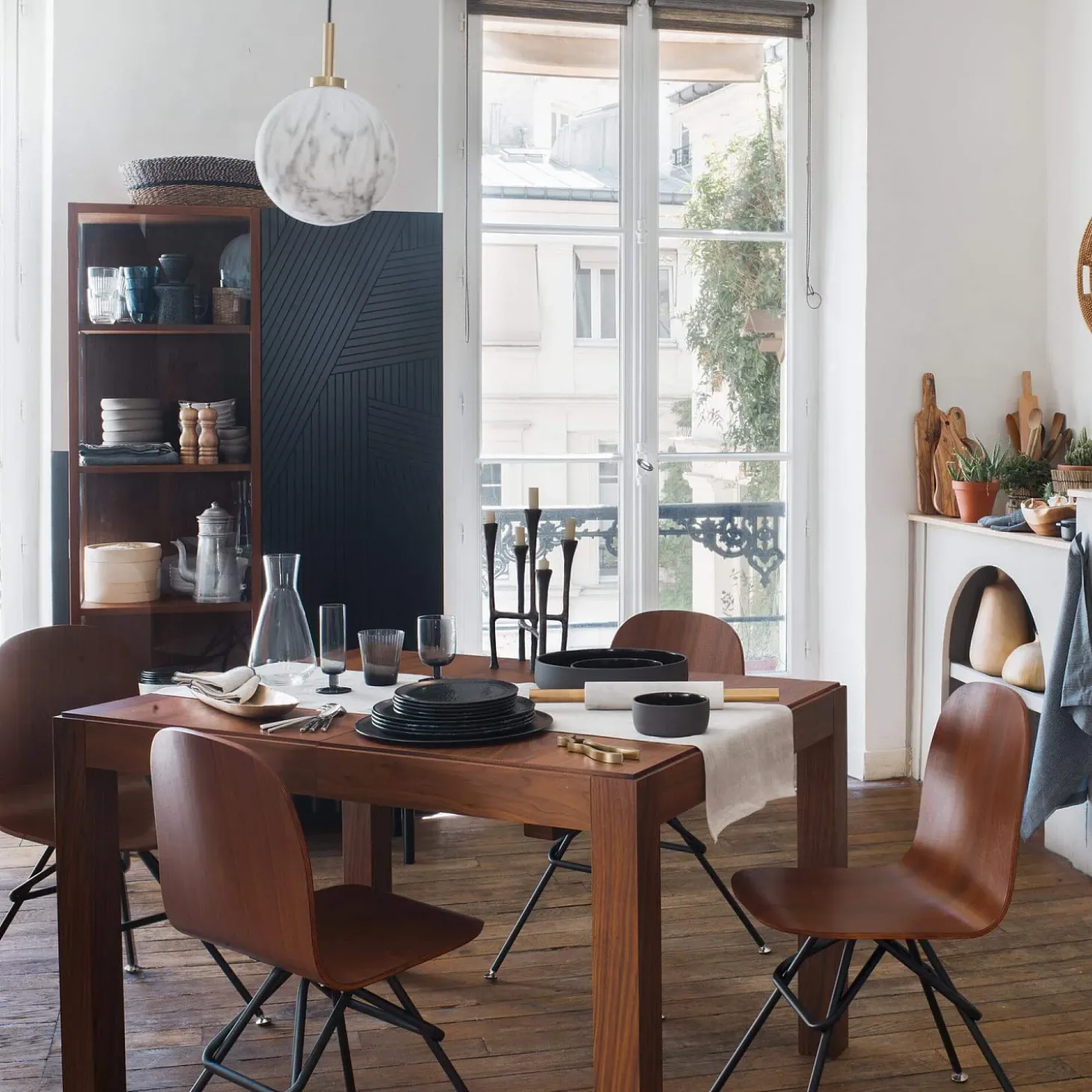 Fabriquée en Europe, cette table en bois finition noyer affiche un design aux lignes sobres et épurées pour intégrer tous les types de décoration. Drio est la table idéale pour les familles nombreuses ou les familles qui aiment recevoir. Son plateau dissimule 2 rallonges indépendantes qui vous permettent d’étendre son plateau, passant ainsi de 4/6 personnes à 8/10 personnes une fois les 2 rallonges installées.