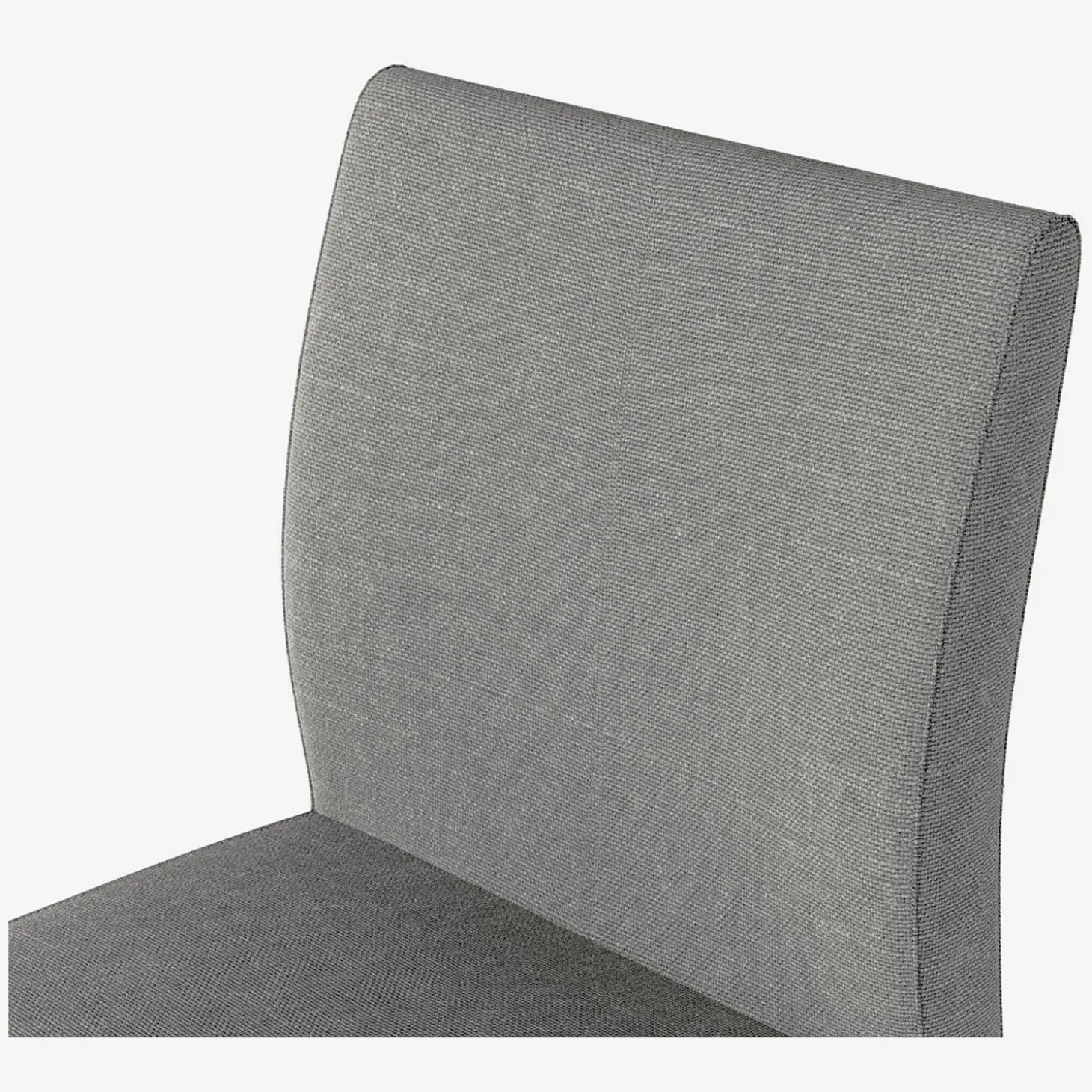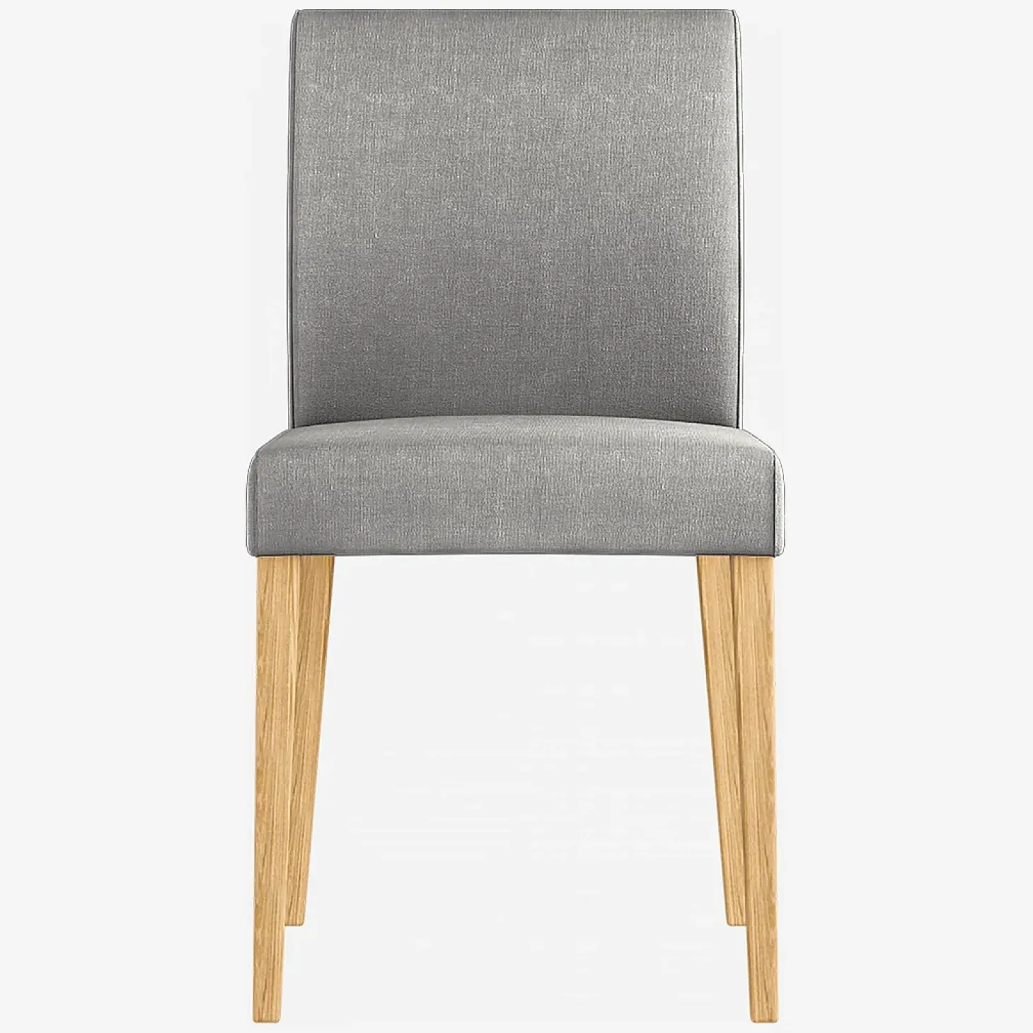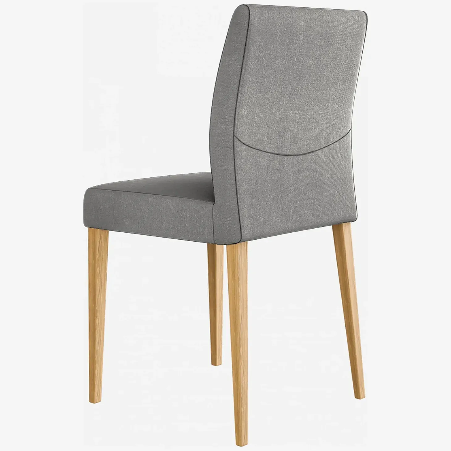 La chaise Eleonora est recouverte d’un tissu italien gris 100% coton. Elle possède des pieds biseautés en frêne massif.