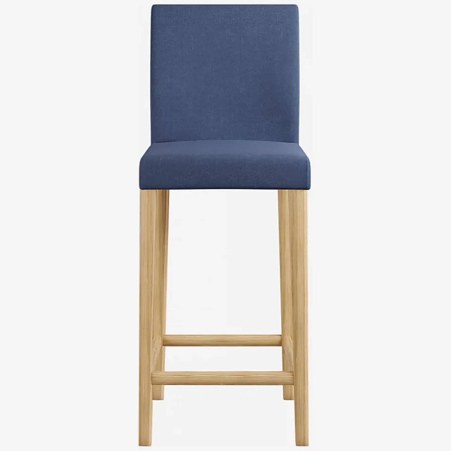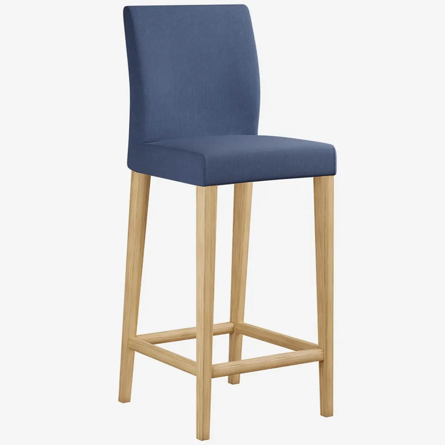 La chaise haute Eleonora est recouverte d’un tissu italien bleu 100% coton. Elle possède des pieds biseautés en frêne massif et affiche une hauteur totale de 115 cm et une hauteur d’assise de 77 cm.