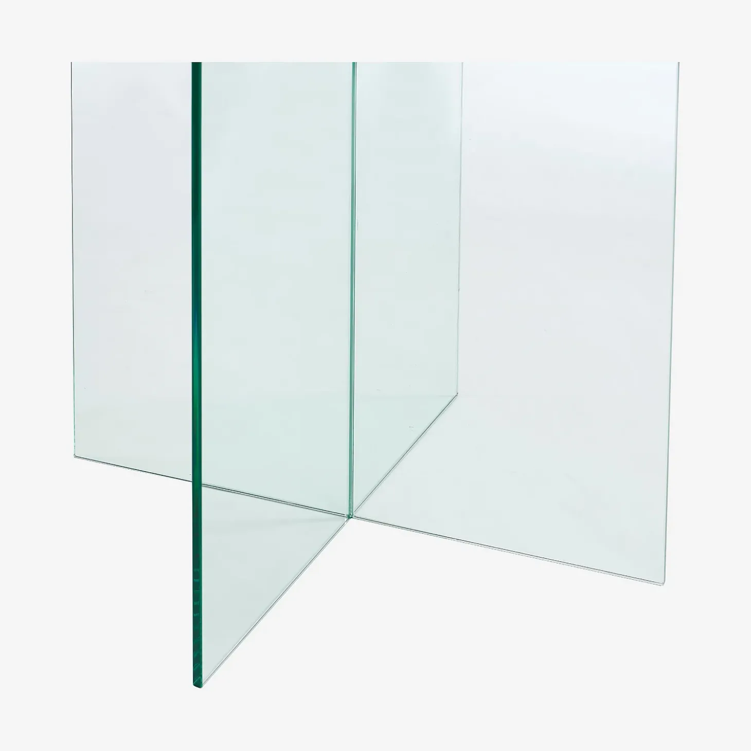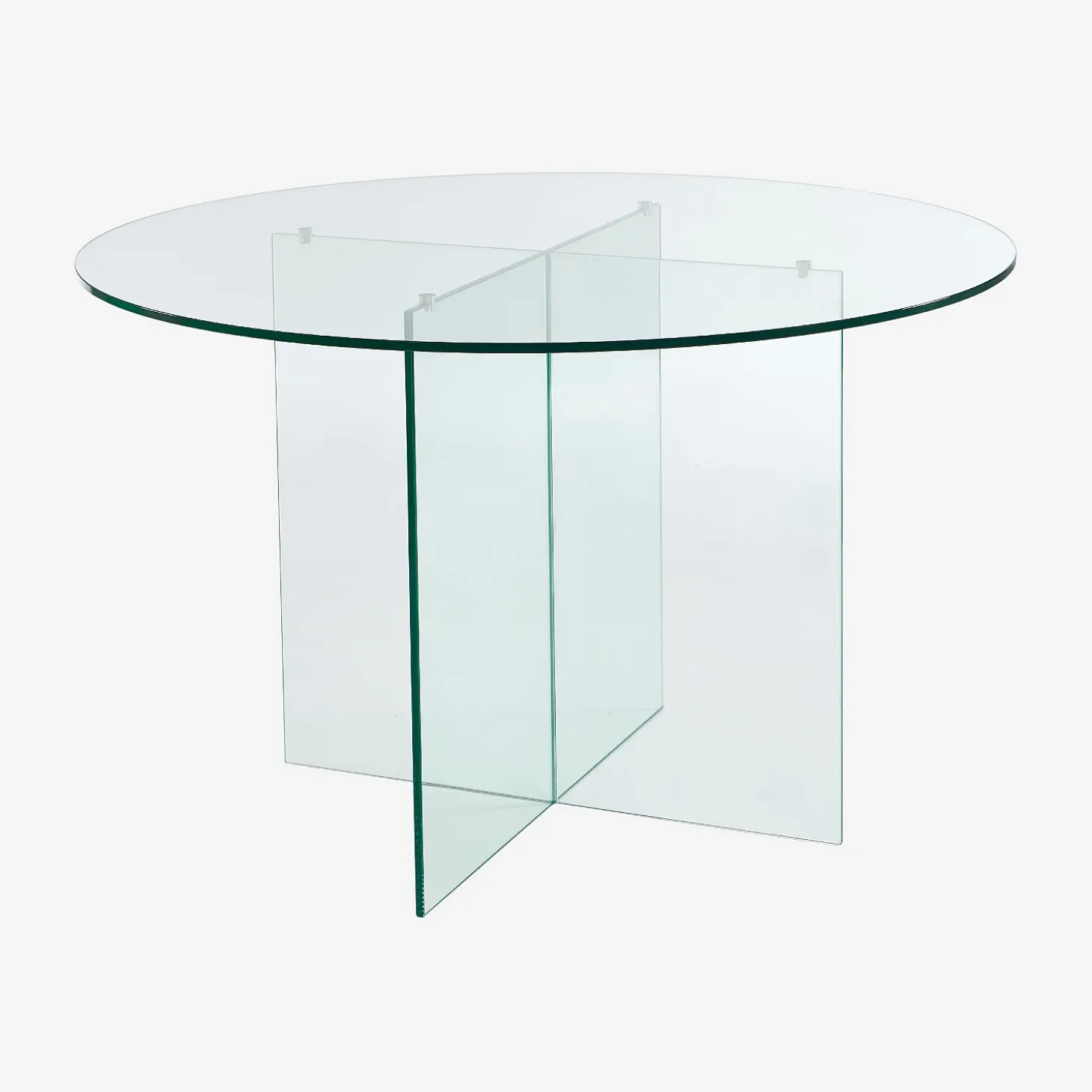 Son plateau rond capte et reflète la lumière avec fluidité, créant un jeu de clarté qui agrandit l’espace et accentue l’impression de légèreté. Le piètement en croix exprime une rigueur géométrique affirmée et souligne l’élégance contemporaine du modèle. Cet équilibre subtil entre structure et transparence confère à l’ensemble une silhouette sculpturale, à la fois discrète et iconique.