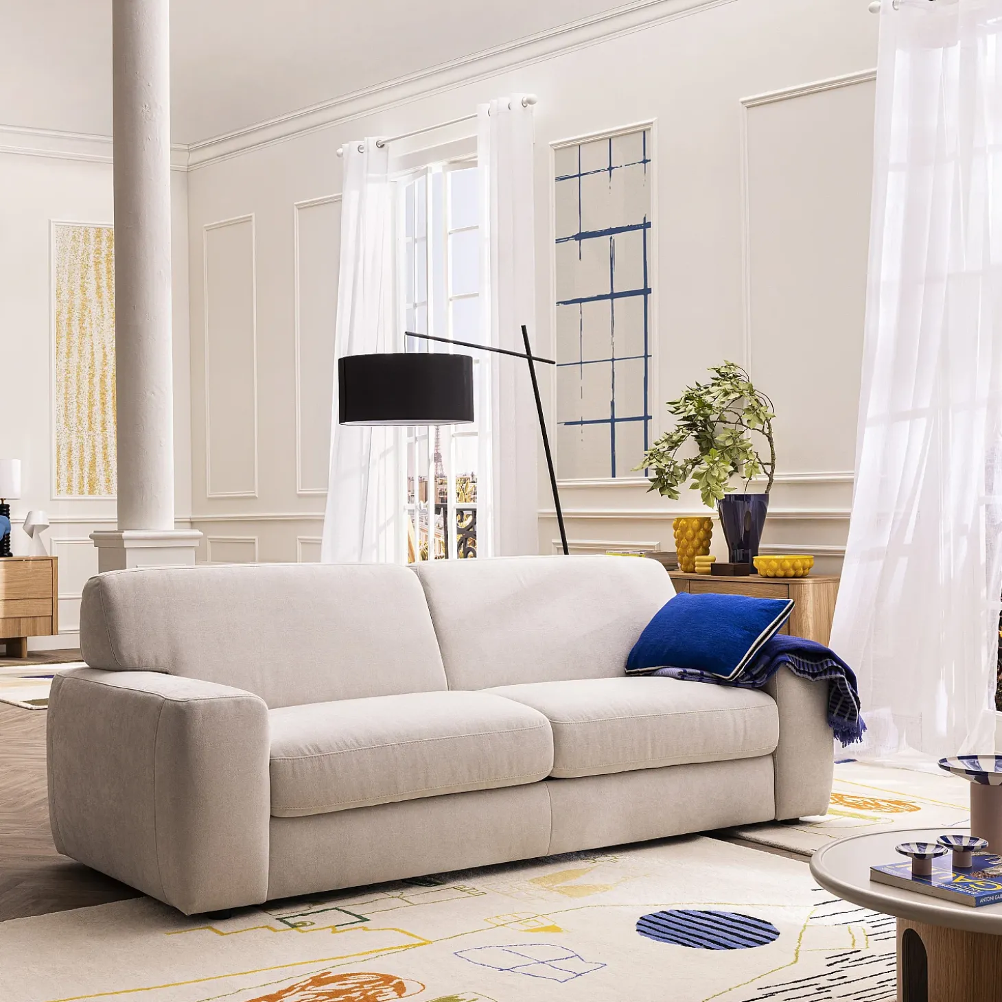 Certaines photos d’ambiance peuvent comporter de légères variations par rapport au modèle réel.Faro déploie des volumes amples et apaisants, dans un esprit cocon propice à la détente prolongée. Un canapé convertible au confort accueillant et à l’esthétique élégante.