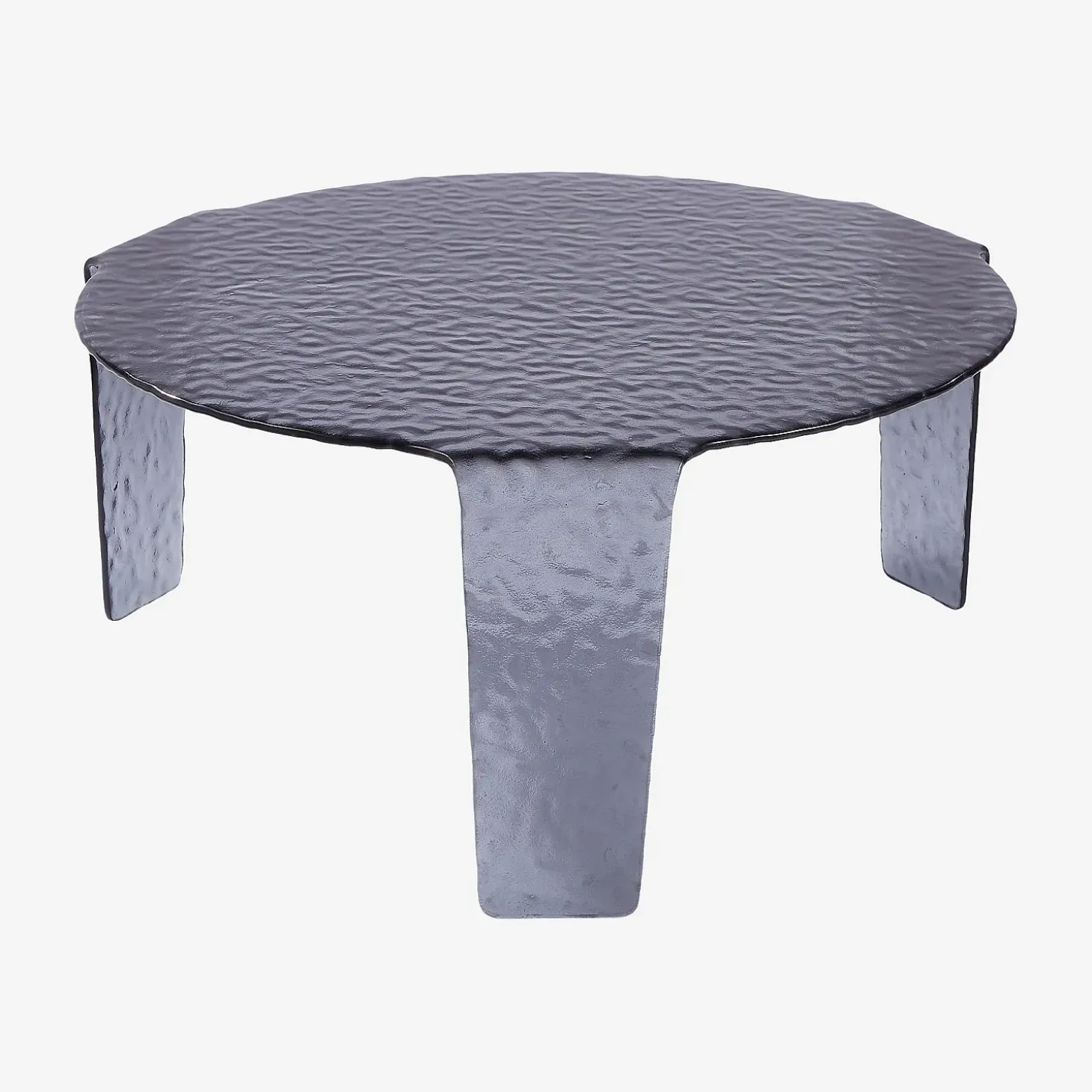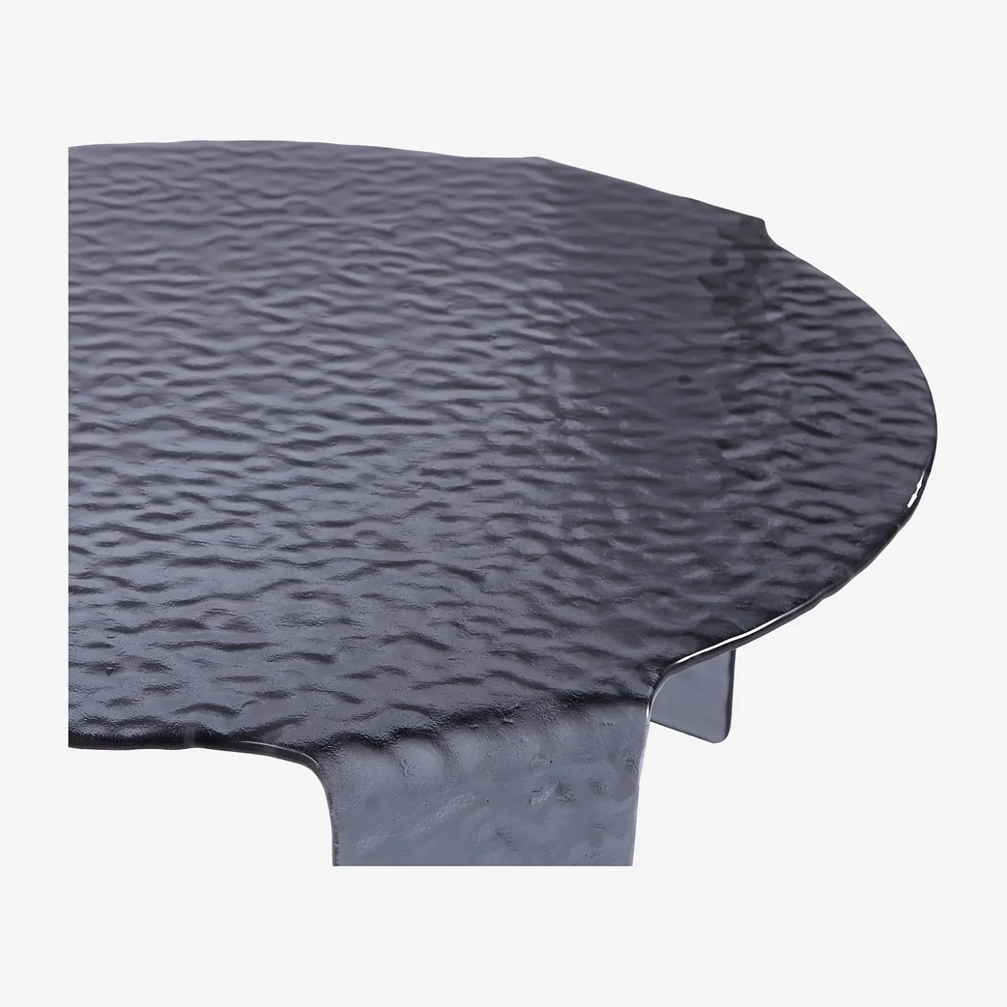 Conçues en verre bullé, ces deux pièces se distinguent par leur texture singulière et leur teinte gris fumé, qui capte la lumière avec subtilité.