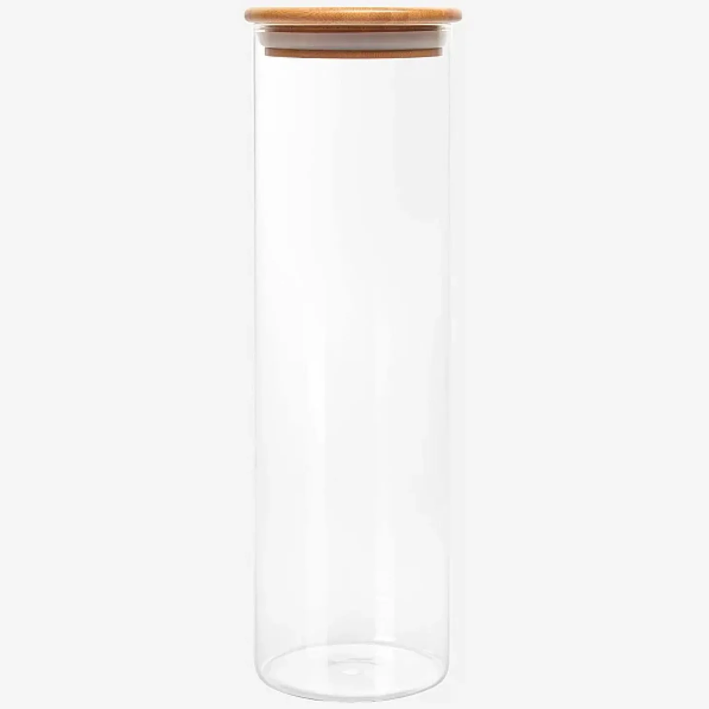 Couvercle en bambouCe bocal en verre borosilicate conjugue résistance thermique et design épuré. Son couvercle en bambou en fait un indispensable aussi pratique qu’esthétique pour une cuisine du quotidien.