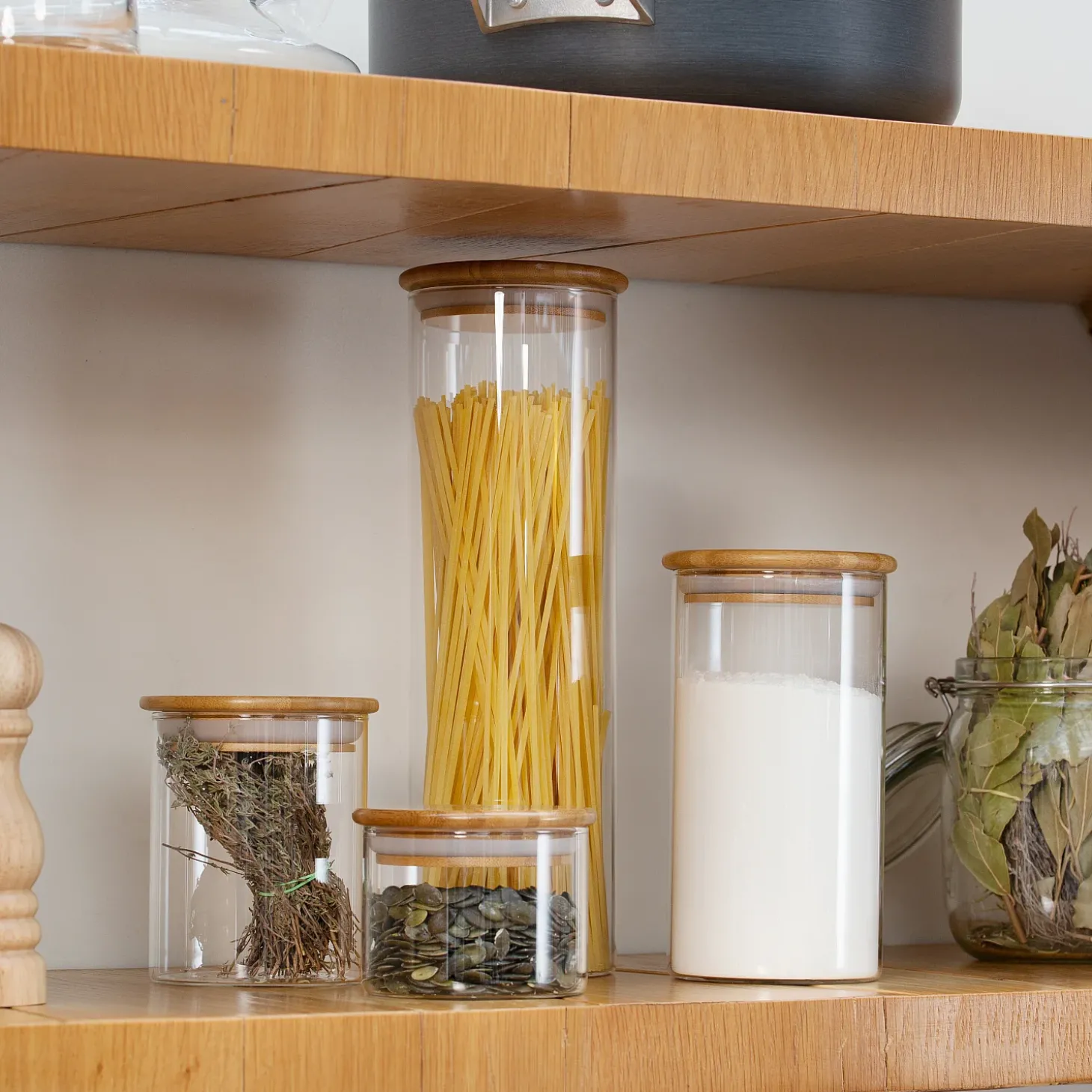 Couvercle en bambouFerm pense aux besoins avec ce bocal en verre et bambou, un allié élégant et fonctionnel pour une cuisine zéro déchet.