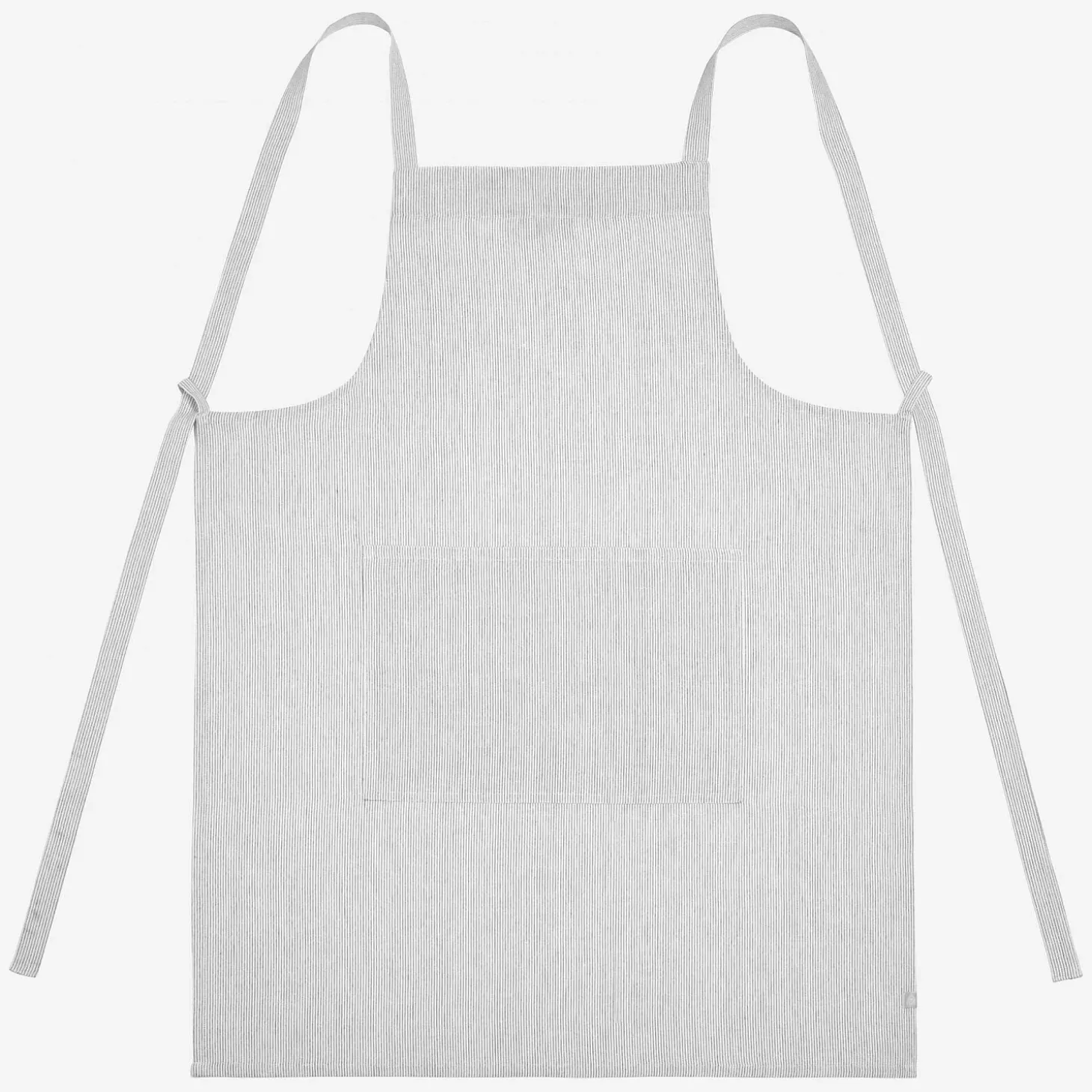 50% coton, 50% lin. Nettoyage à 40°C, traitement à l’eau de javel déconseillé, repassage à température intermédiaire, nettoyage à sec, ne pas sécher en machine.Flag signe un tablier en coton et lin blanc tissé de noir, qui conjugue élégance épurée et praticité pour sublimer chaque moment en cuisine.