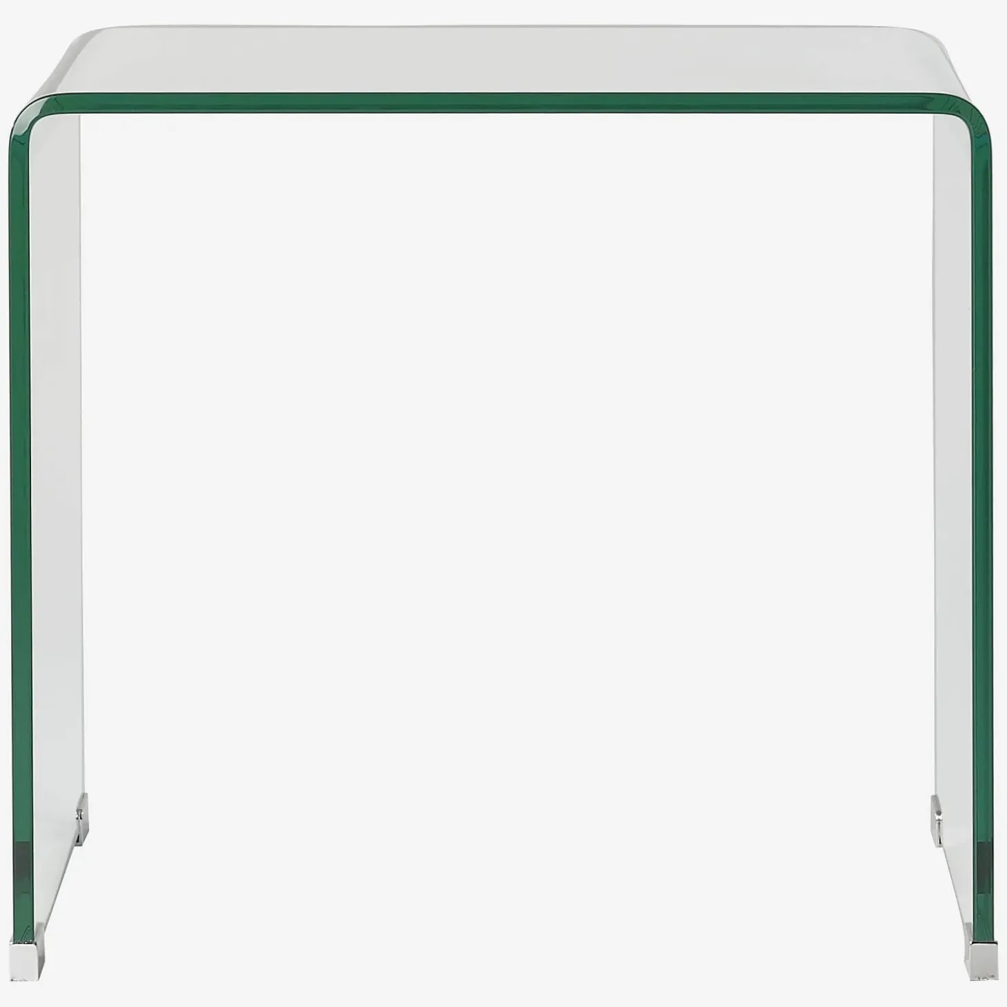 Transparente, la table d’appoint Gala permet de mettre en valeur votre canapé. Très résistante, cette table basse en verre trempé demeurera durablement en parfait état. Ses pieds à la finition chromée apportent une touche raffinée à ce meuble épuré et discret, aux angles arrondis. Très peu encombrante mais fonctionnelle, cette gamme se décline en console et en table basse.