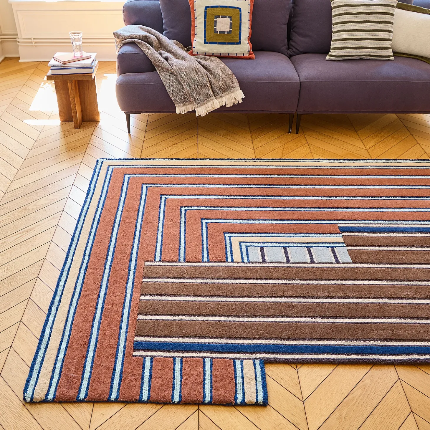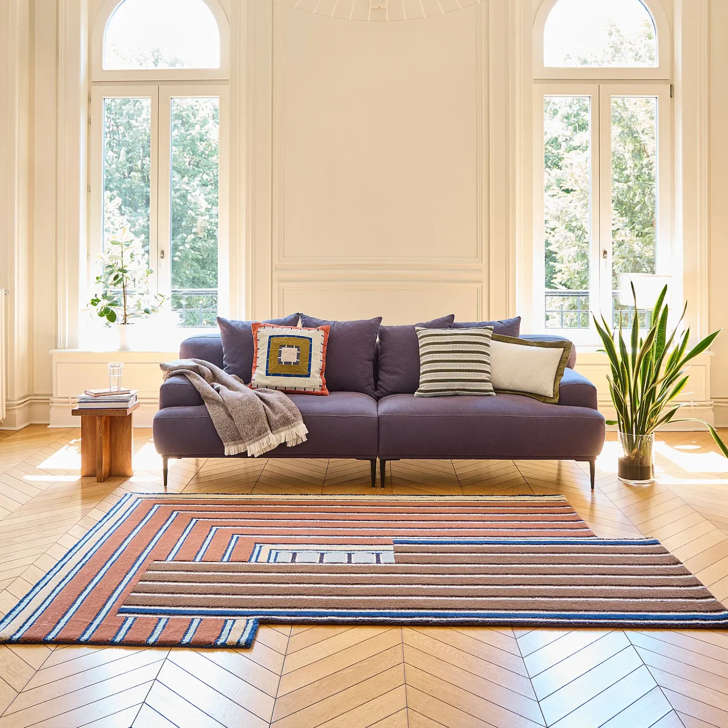 Le Galon 165 x 240 cm devient ainsi une œuvre à la fois graphique et sensorielle, une pièce qui engage l’œil tout en apportant une sensation de confort et de chaleur à l’environnement.
