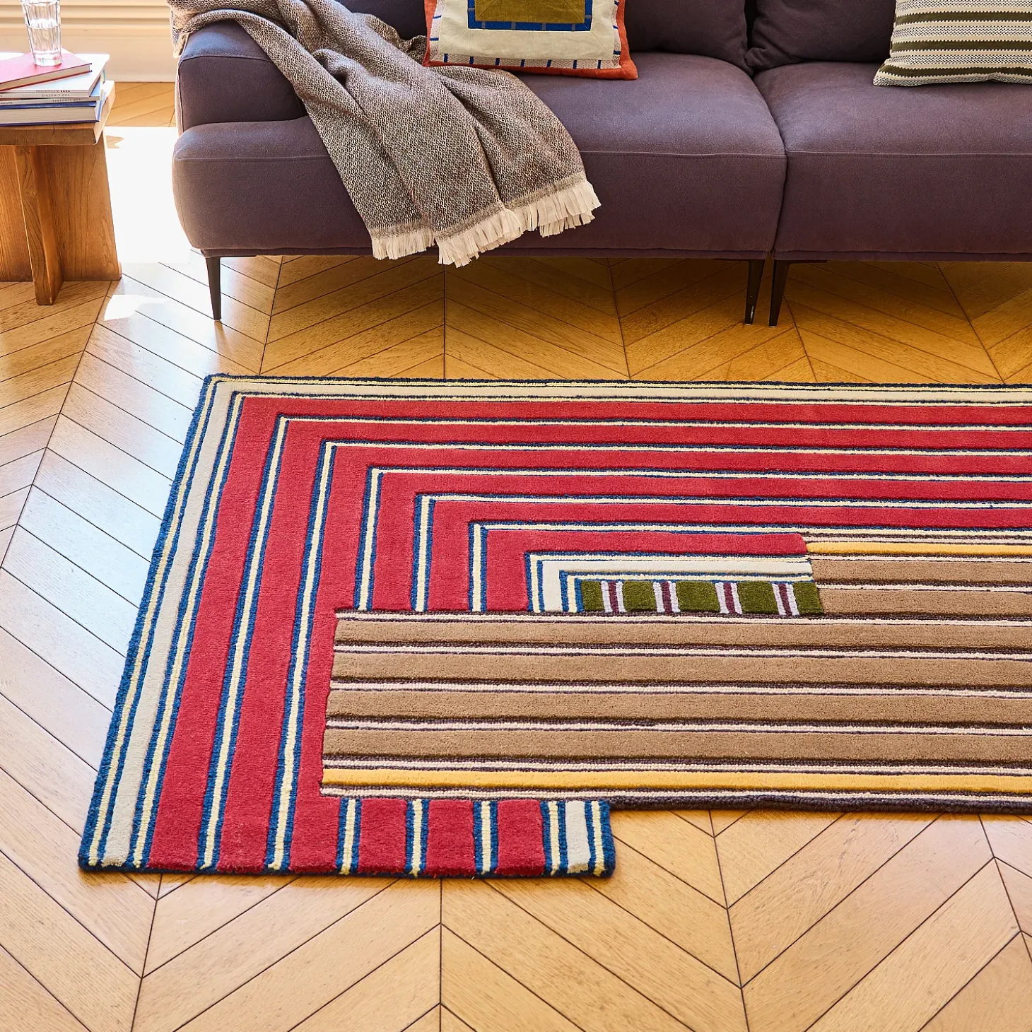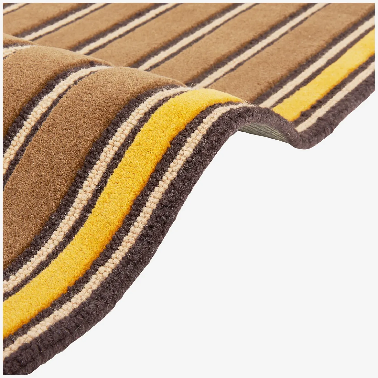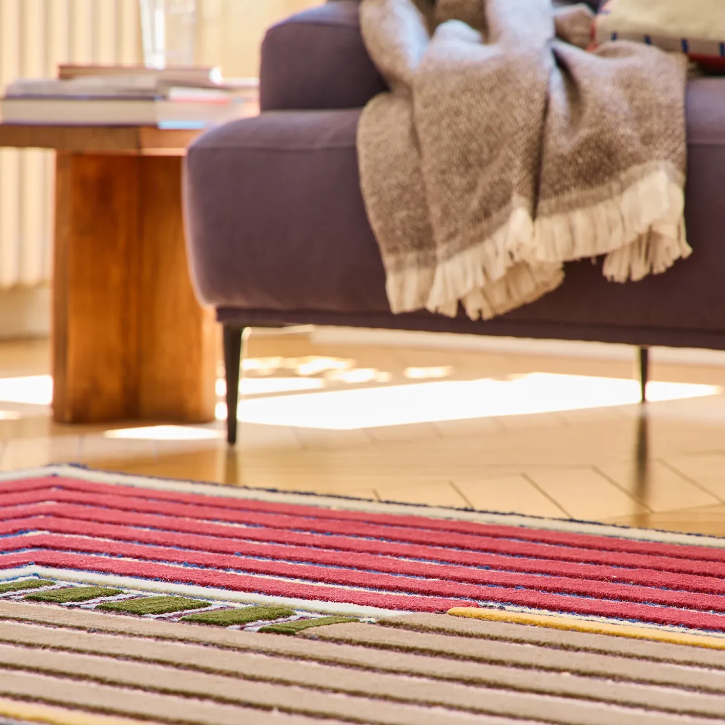 Dans cette version du tapis Galon 130 x 190 cm, Constance Frapolli explore une palette de tons bruns et terreux, ponctuée de touches éclatantes qui viennent dynamiser l’ensemble.