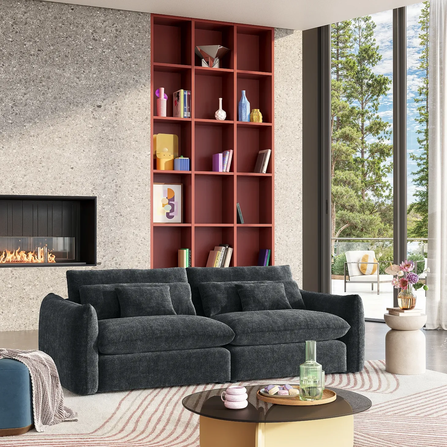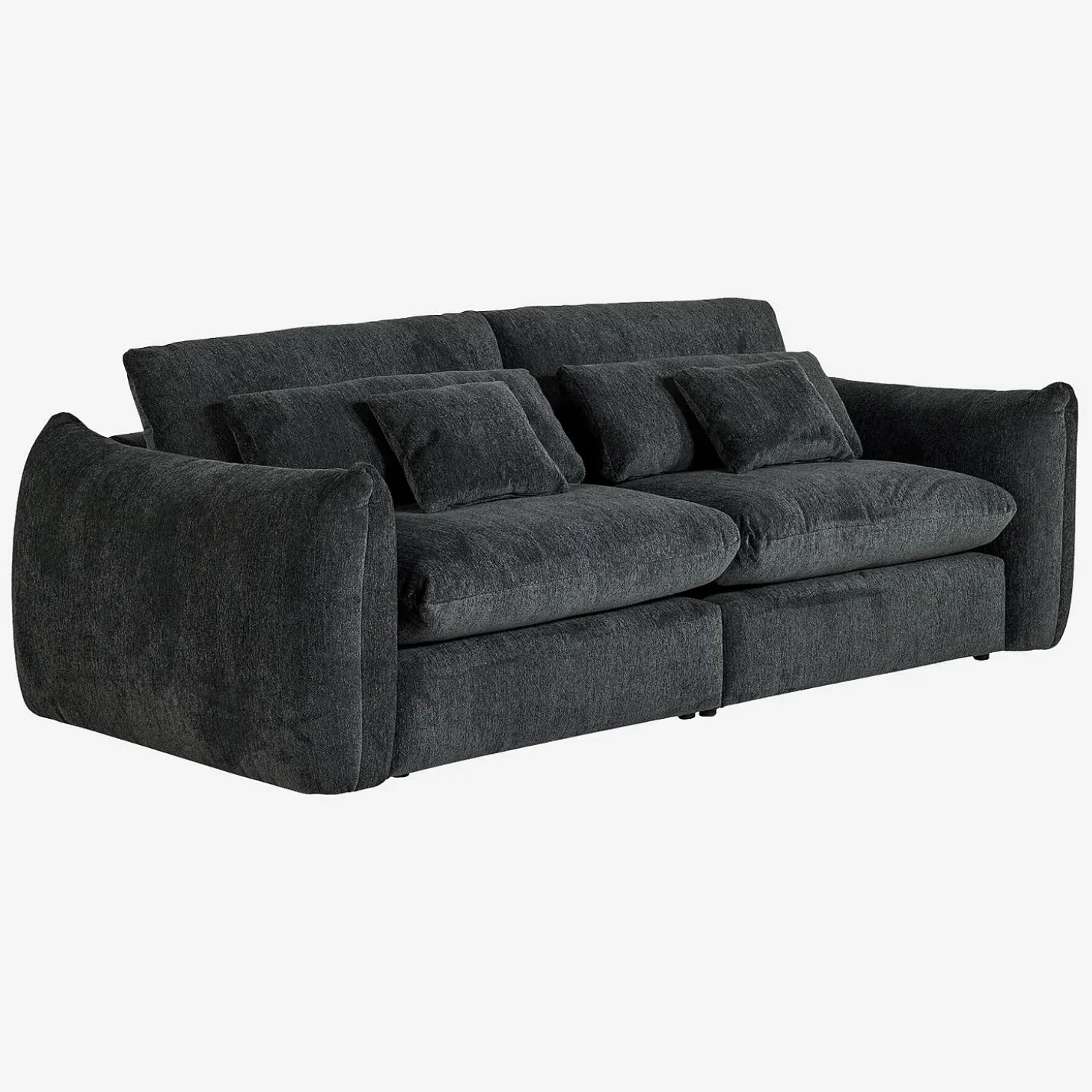 Son revêtement en tissu chenille ainsi que les coussins décoratifs assortis assurent un design harmonieux et tendance.